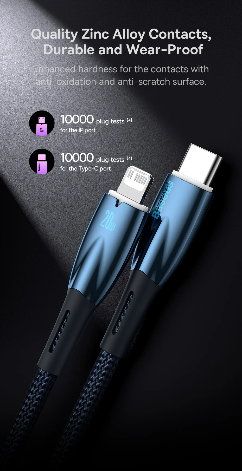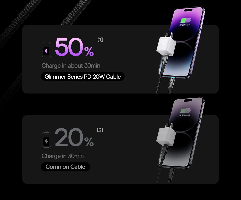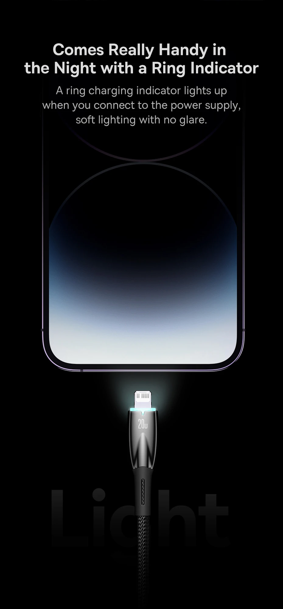 Comprar Baseus-Cable USB tipo C LED de 20W para iPhone, cargador de carga rápida para iPad, 14, 13, 12, 11 Pro Max, XS, Xr, PD