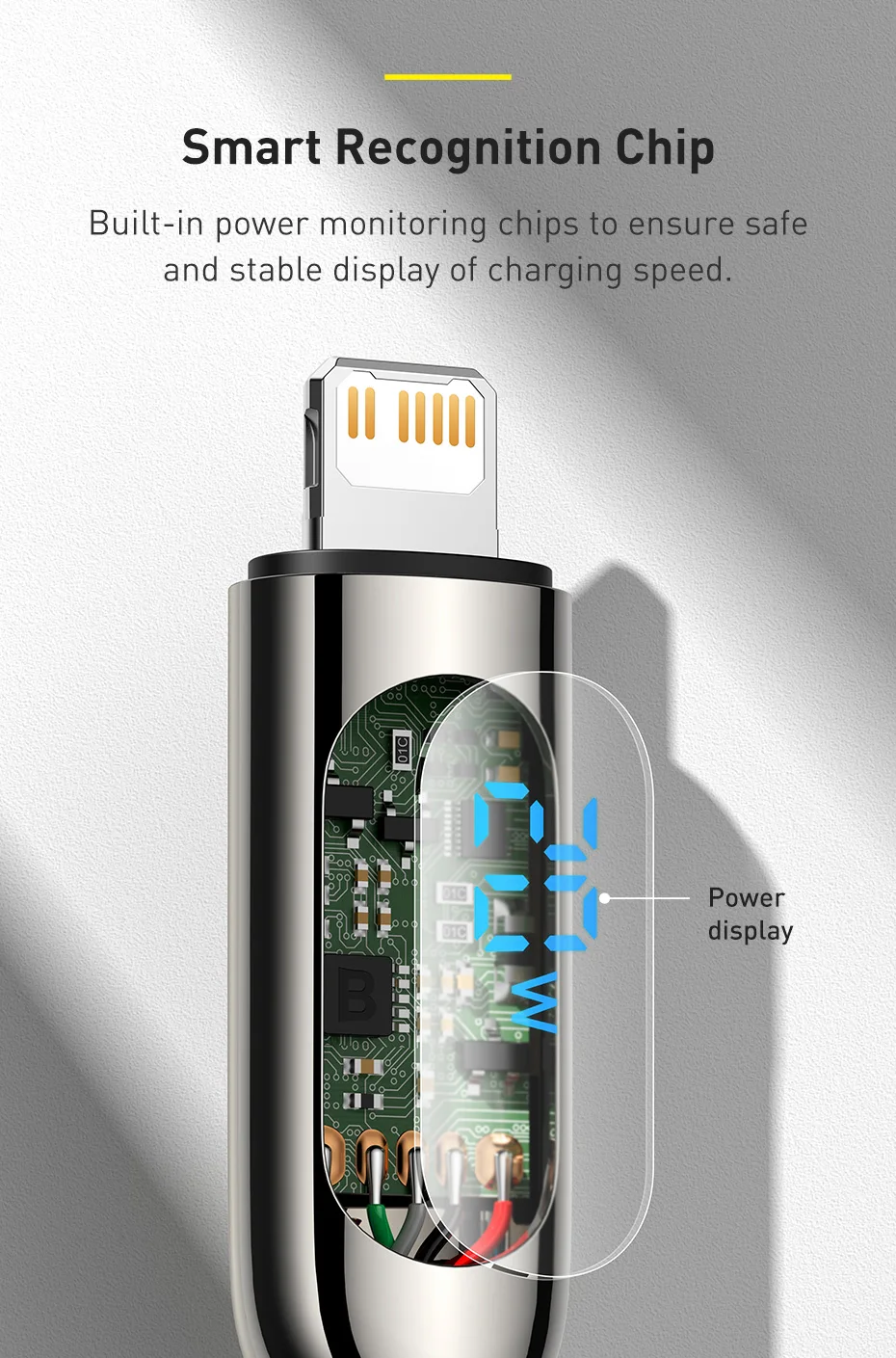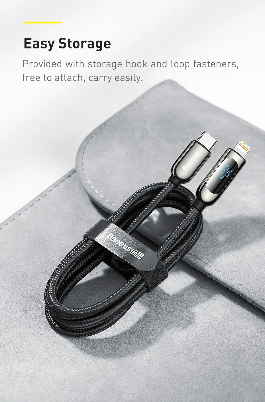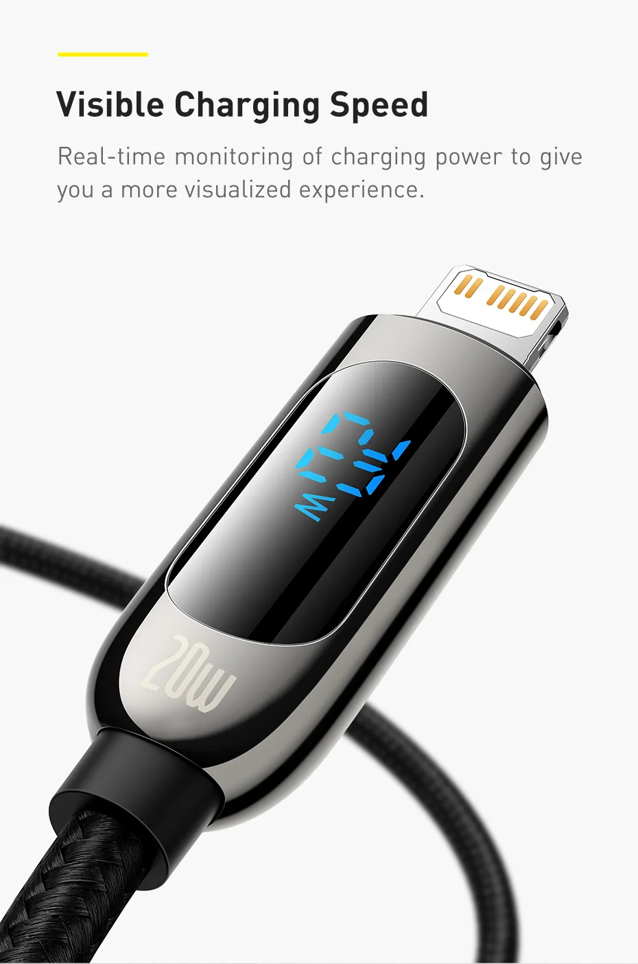 Comprar Baseus-Cable USB tipo C para teléfono móvil, dispositivo de carga rápida con pantalla Digital de 20W, PD, para iPhone 14, 13, 12 Pro Max, XR