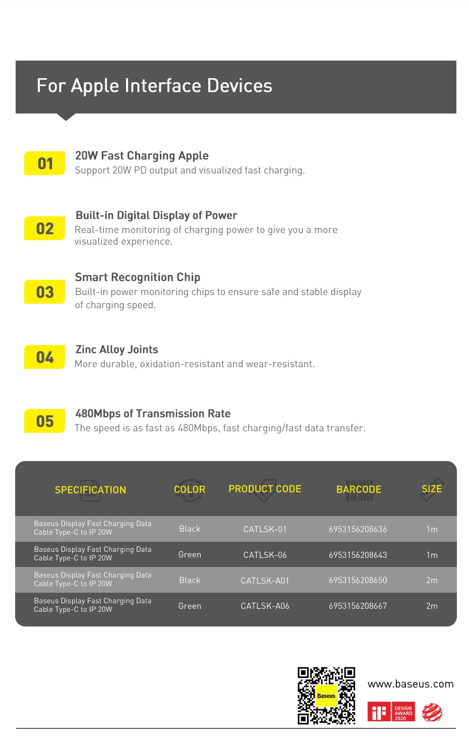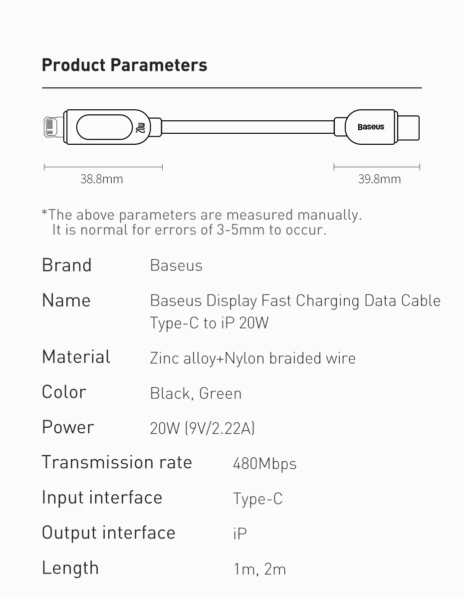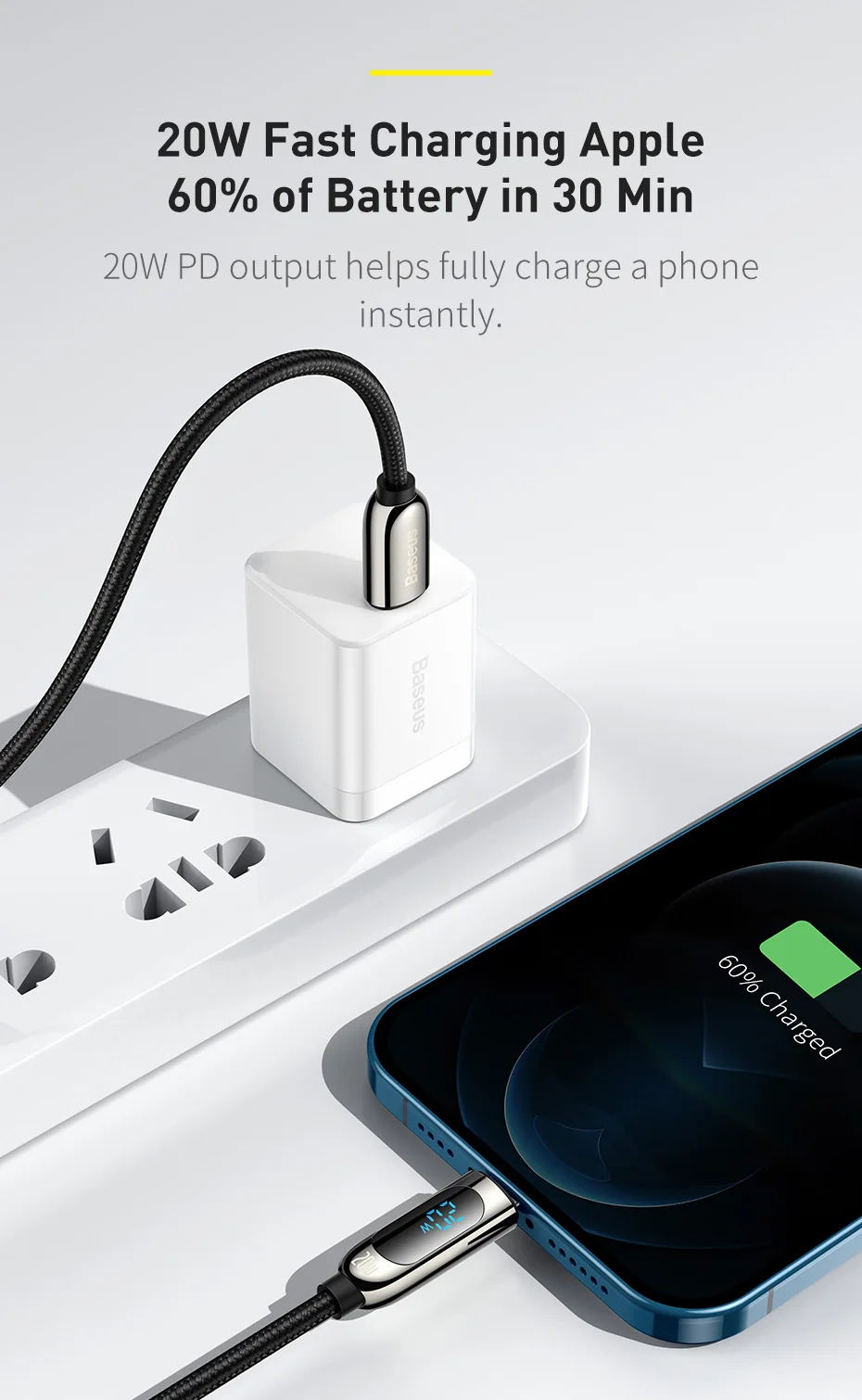 Comprar Baseus-Cable USB tipo C para teléfono móvil, dispositivo de carga rápida con pantalla Digital de 20W, PD, para iPhone 14, 13, 12 Pro Max, XR