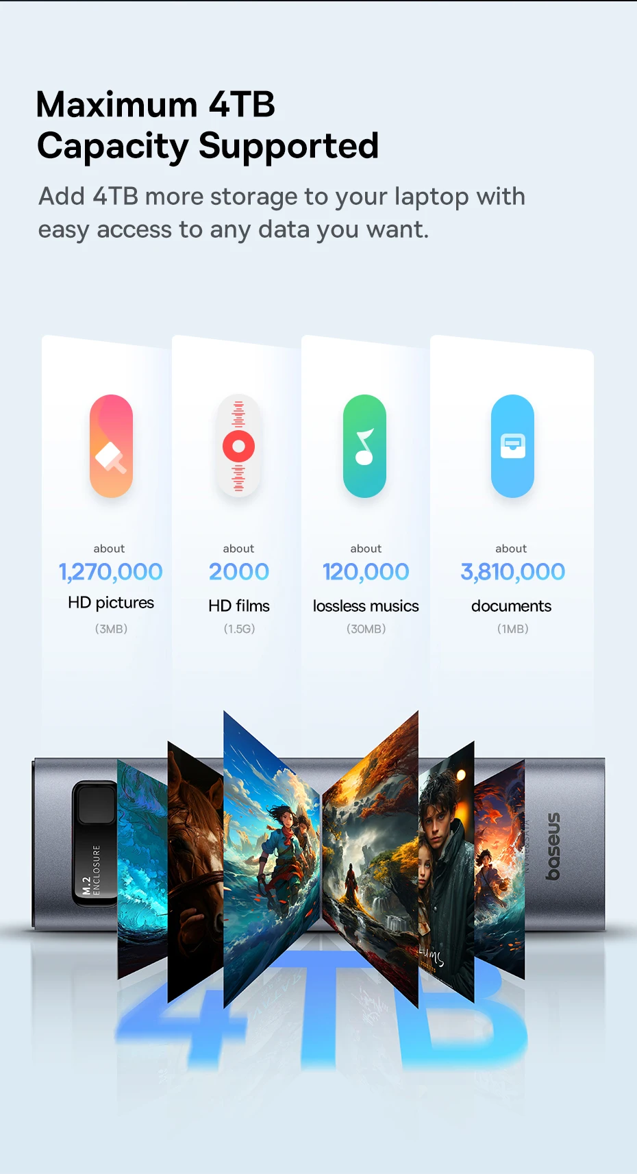 Agregue 4TB más de almacenamiento a su computadora portátil con fácil acceso a cualquier dato que desee.