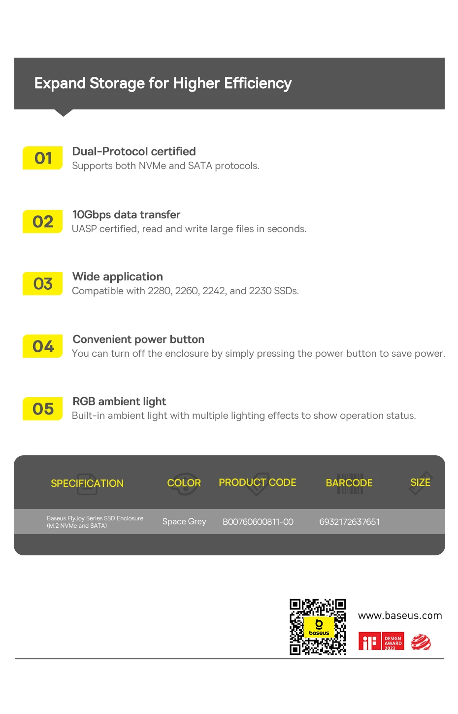 2. Nombre: carcasa SSD de la serie Baseus FlyJoy (M.2 NVMe y SATA)