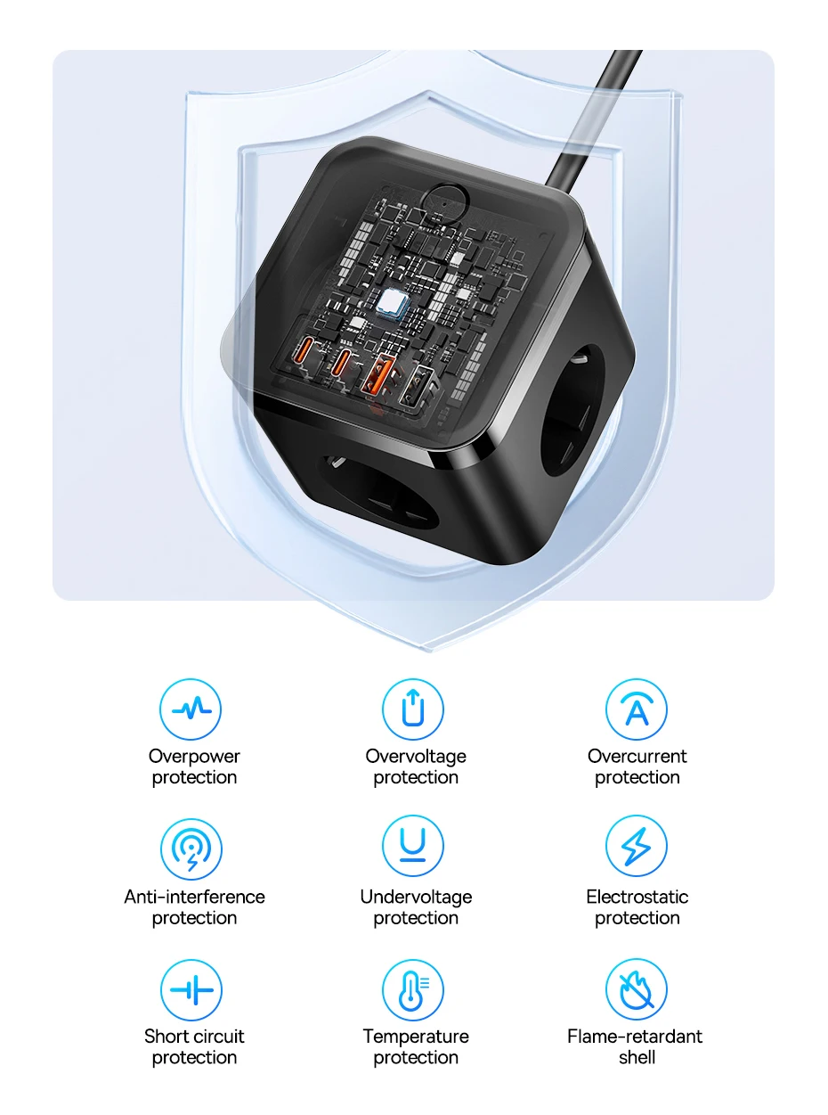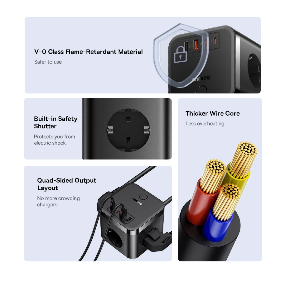 1.Material retardante de llama clase V-0, más seguro de usar