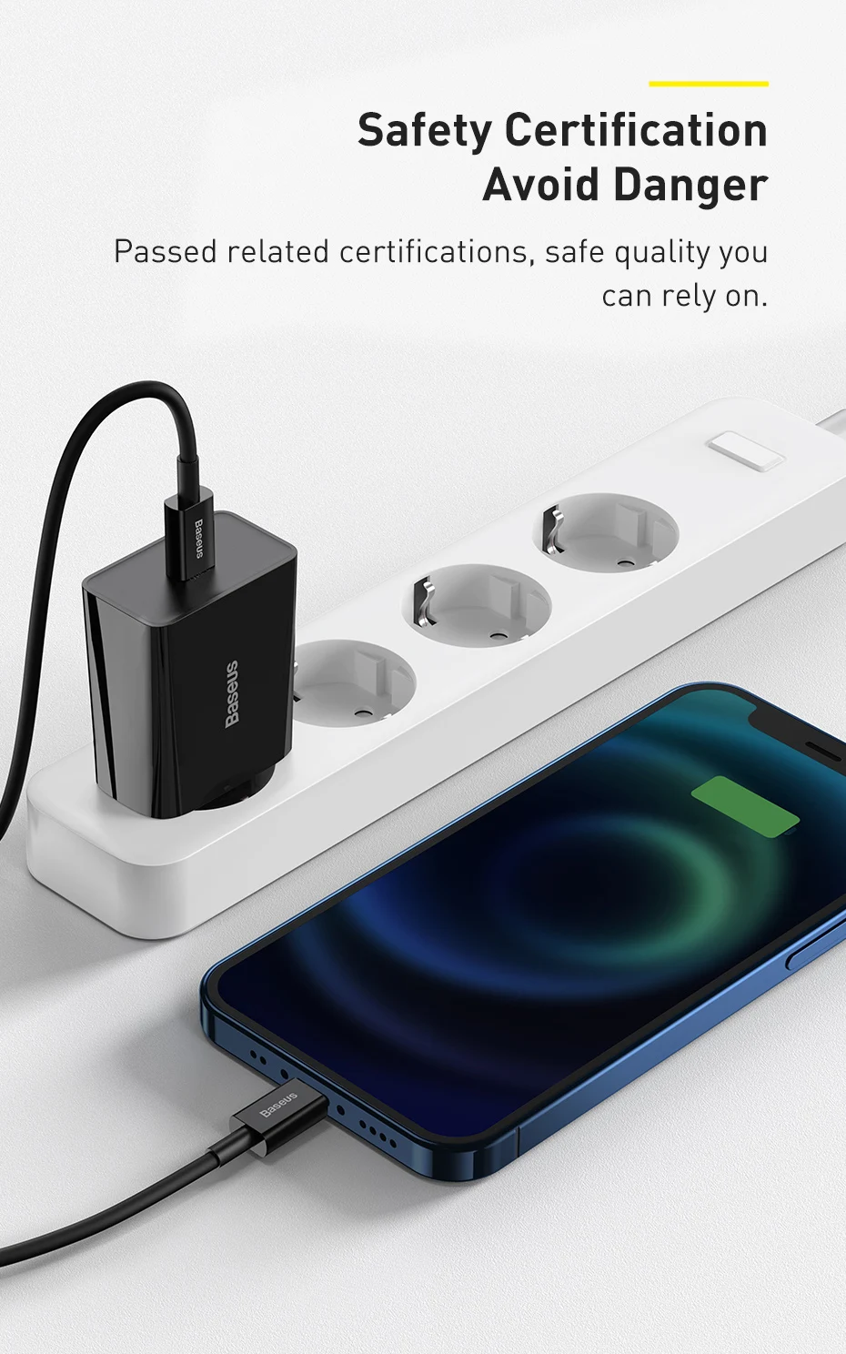 Comprar Baseus-cargador de carga rápida QC 3,0 PD, USB tipo C, 20W, para iPhone 15, 14, 13, 12, X, Xs, 8, Xiaomi, Samsung