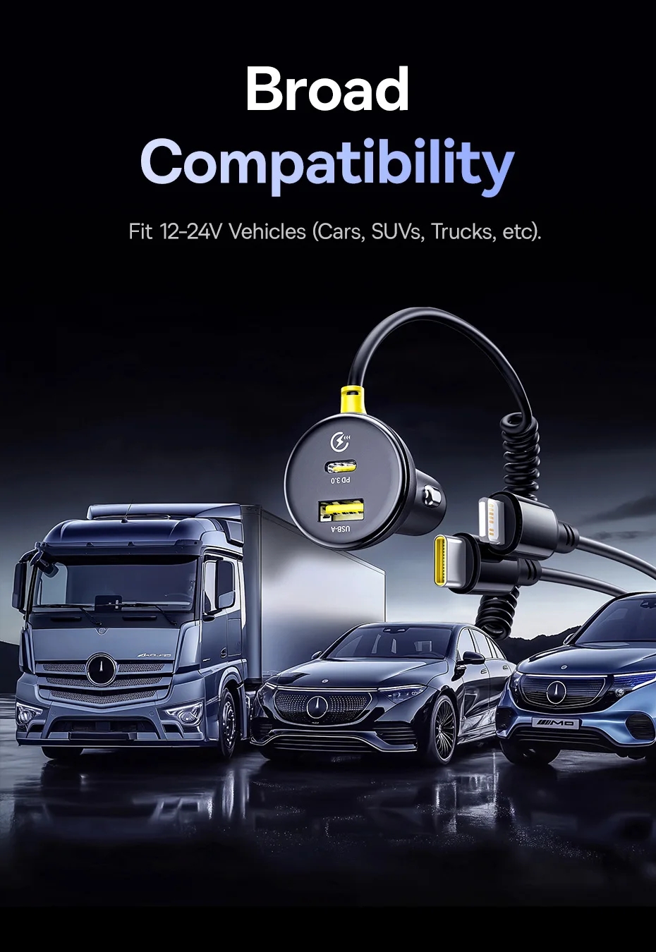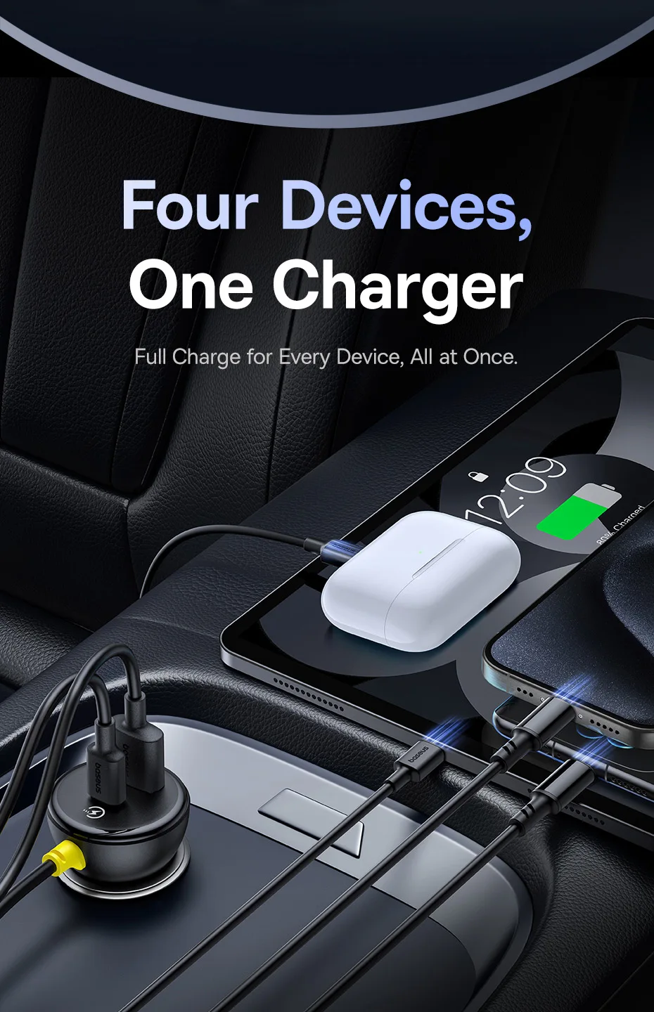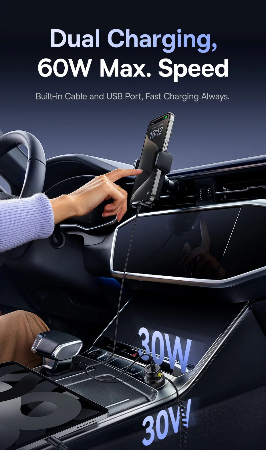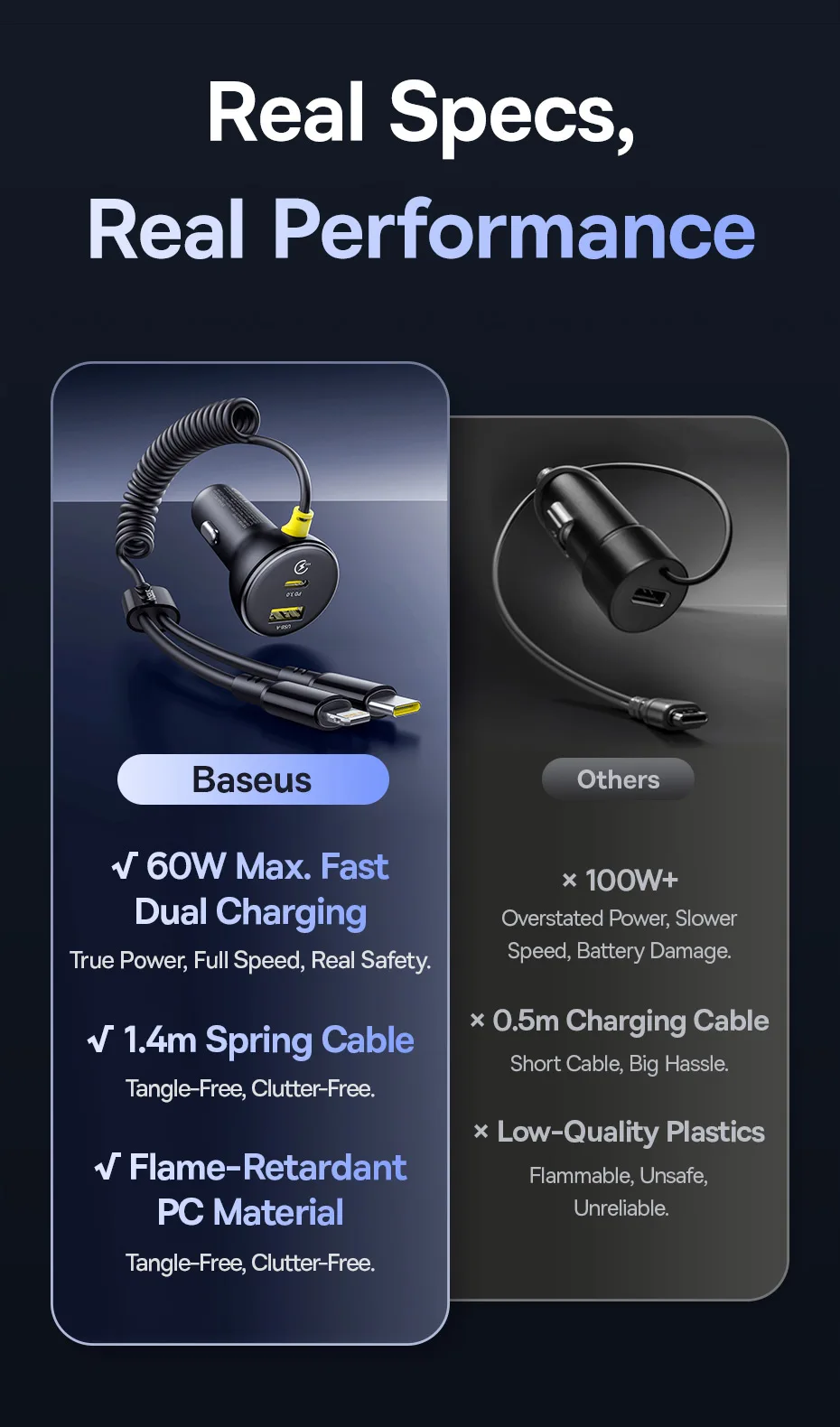 Baseus-cargador de coche de 60W, Cable de resorte retráctil PD QC SCP FCP AFC, carga rápida para iPhone, Samsung, Xiaomi, cargador de teléfono para coche