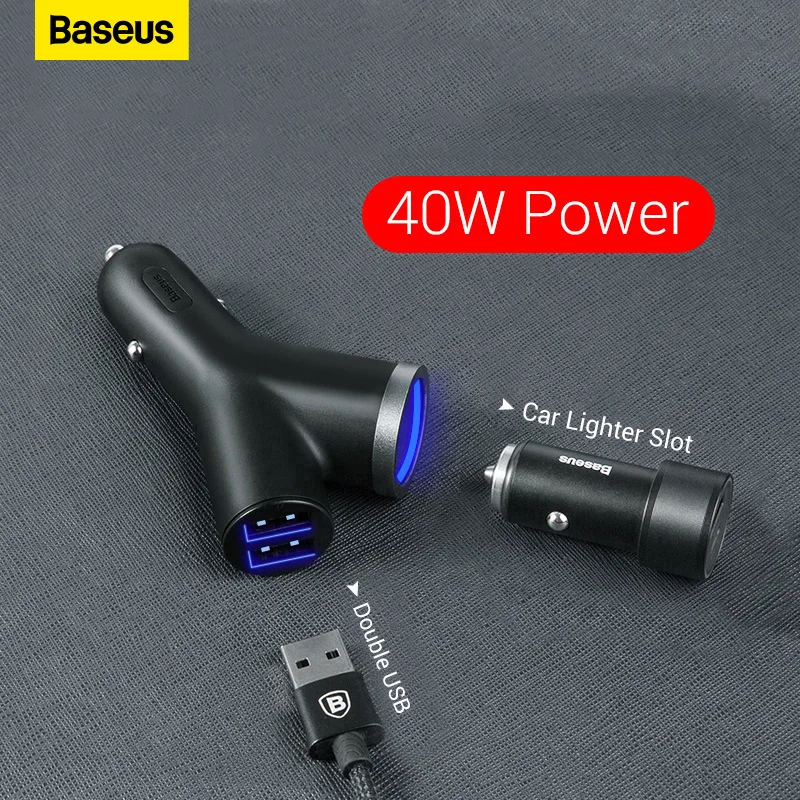 Comprar Baseus-cargador de coche Universal de 40W, ranura para encendedor de cigarrillos, USB Dual, para tableta, GPS, 3 dispositivos