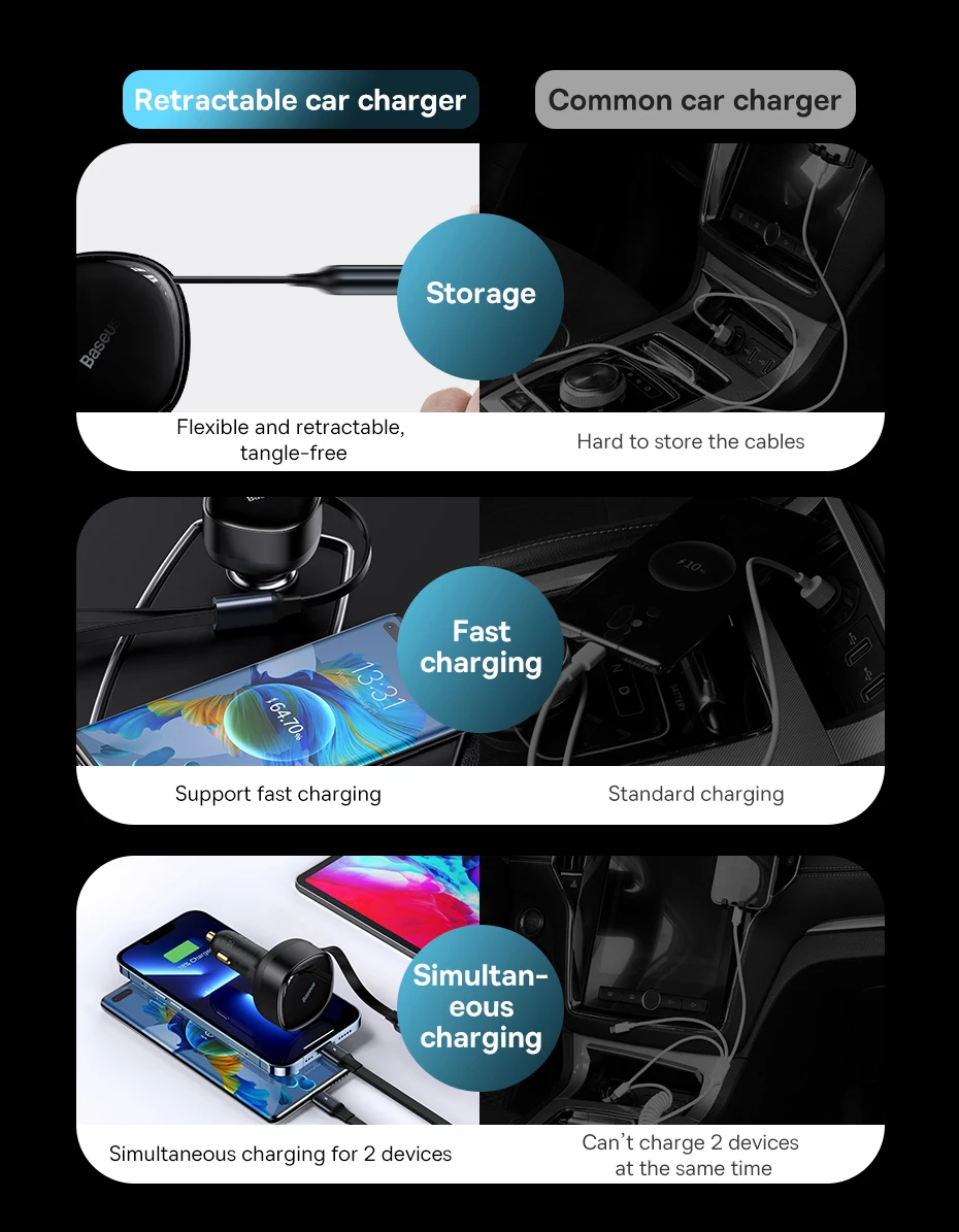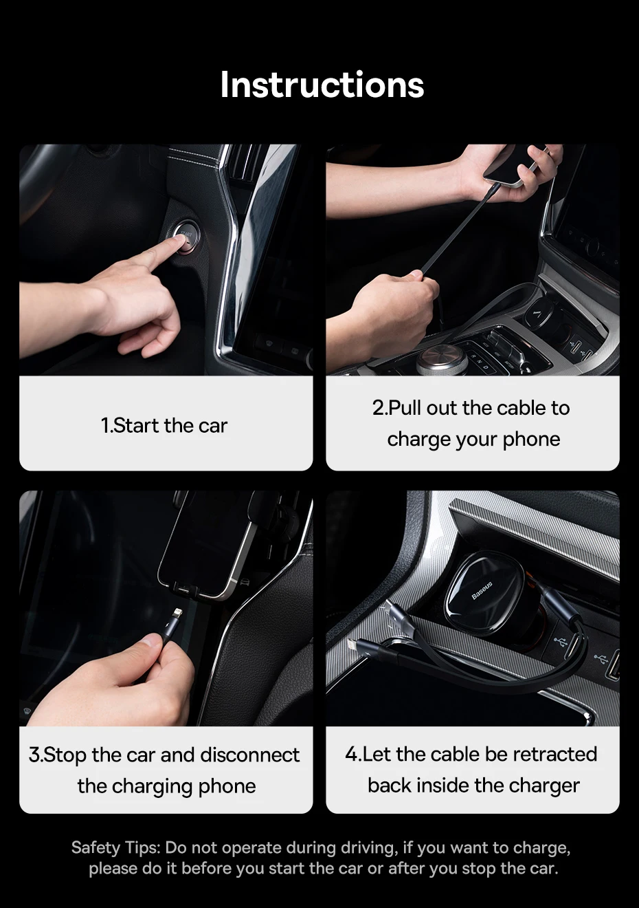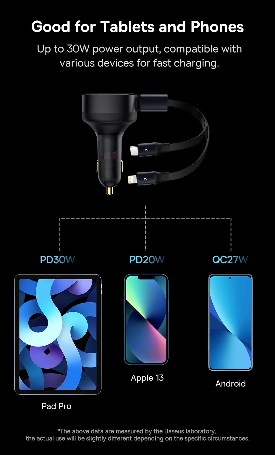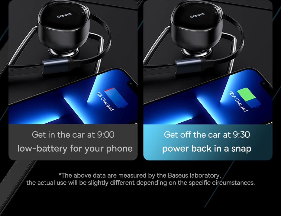 Comprar Baseus-cargador de coche USB tipo C, dispositivo de carga rápida PD, 30W, 2 en 1, Cable retráctil, para iPhone 13, 12 Pro