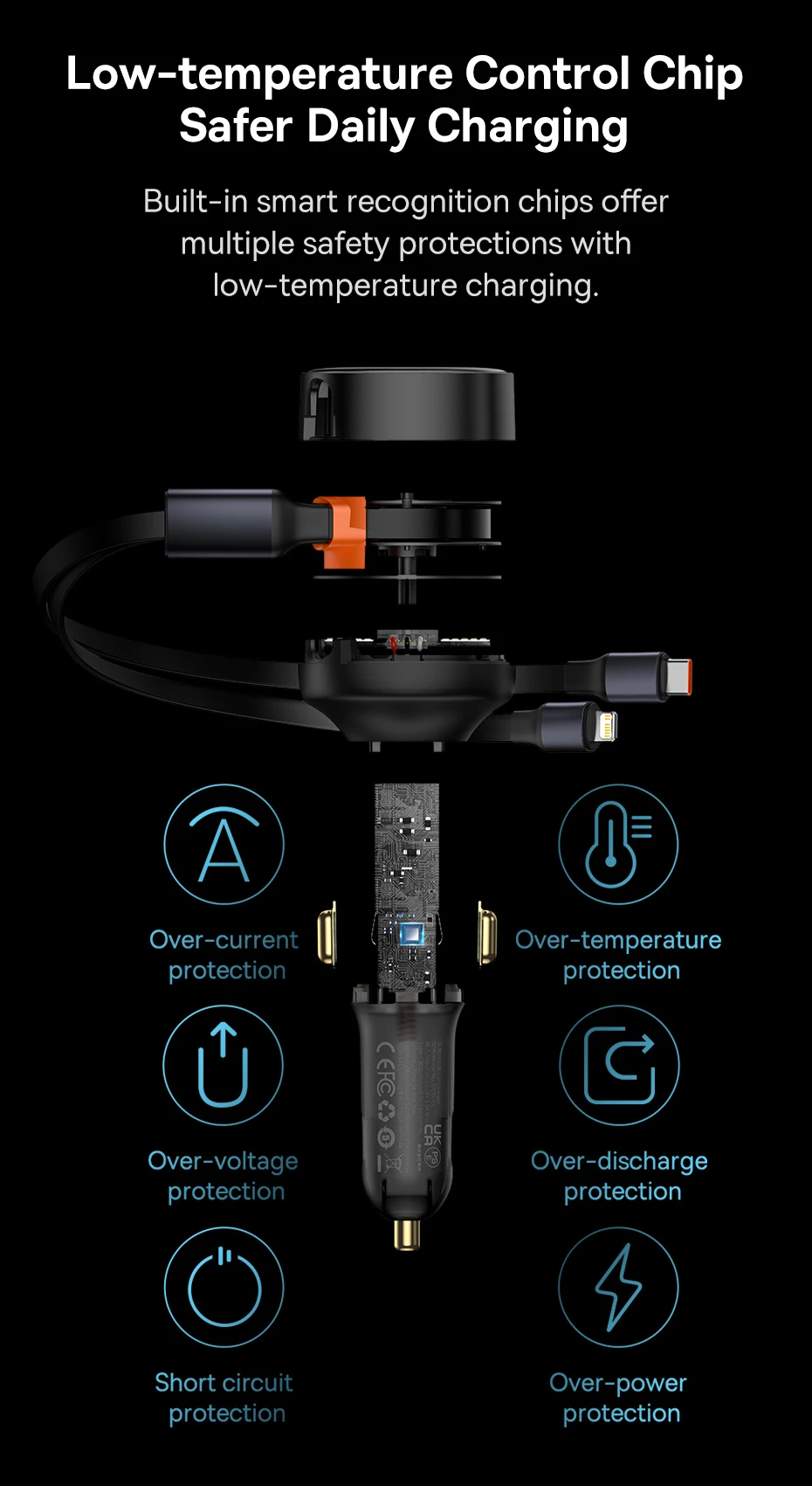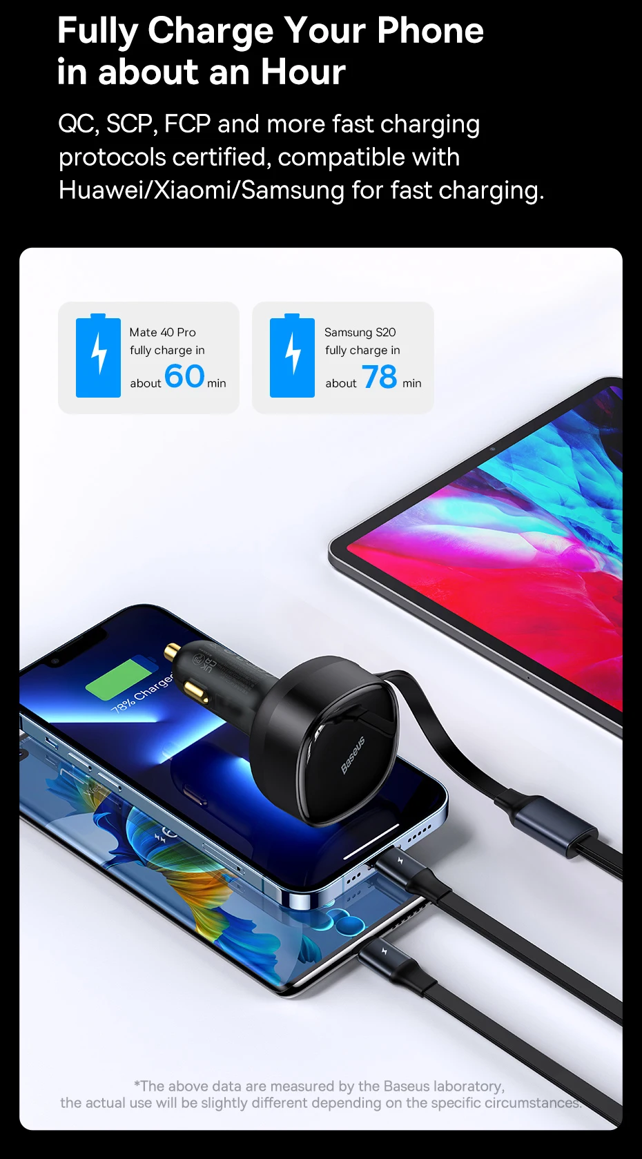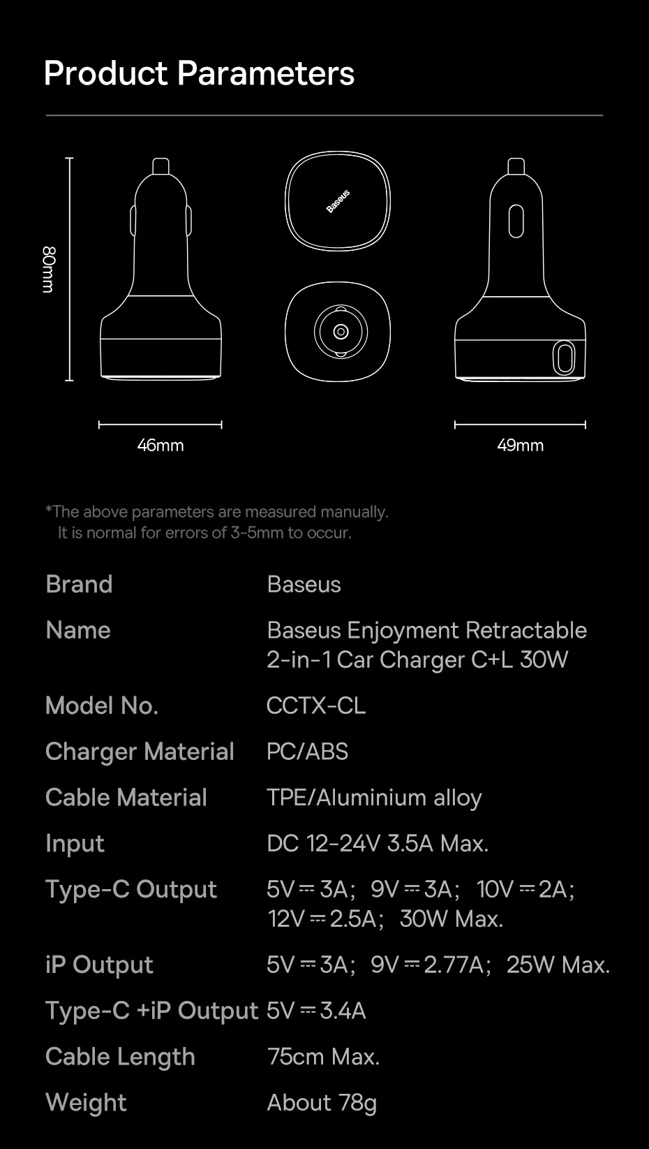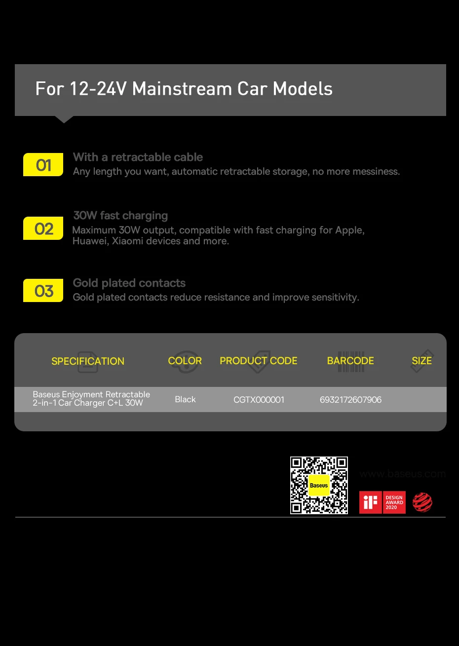 Comprar Baseus-cargador de coche USB tipo C, dispositivo de carga rápida PD, 30W, 2 en 1, Cable retráctil, para iPhone 13, 12 Pro