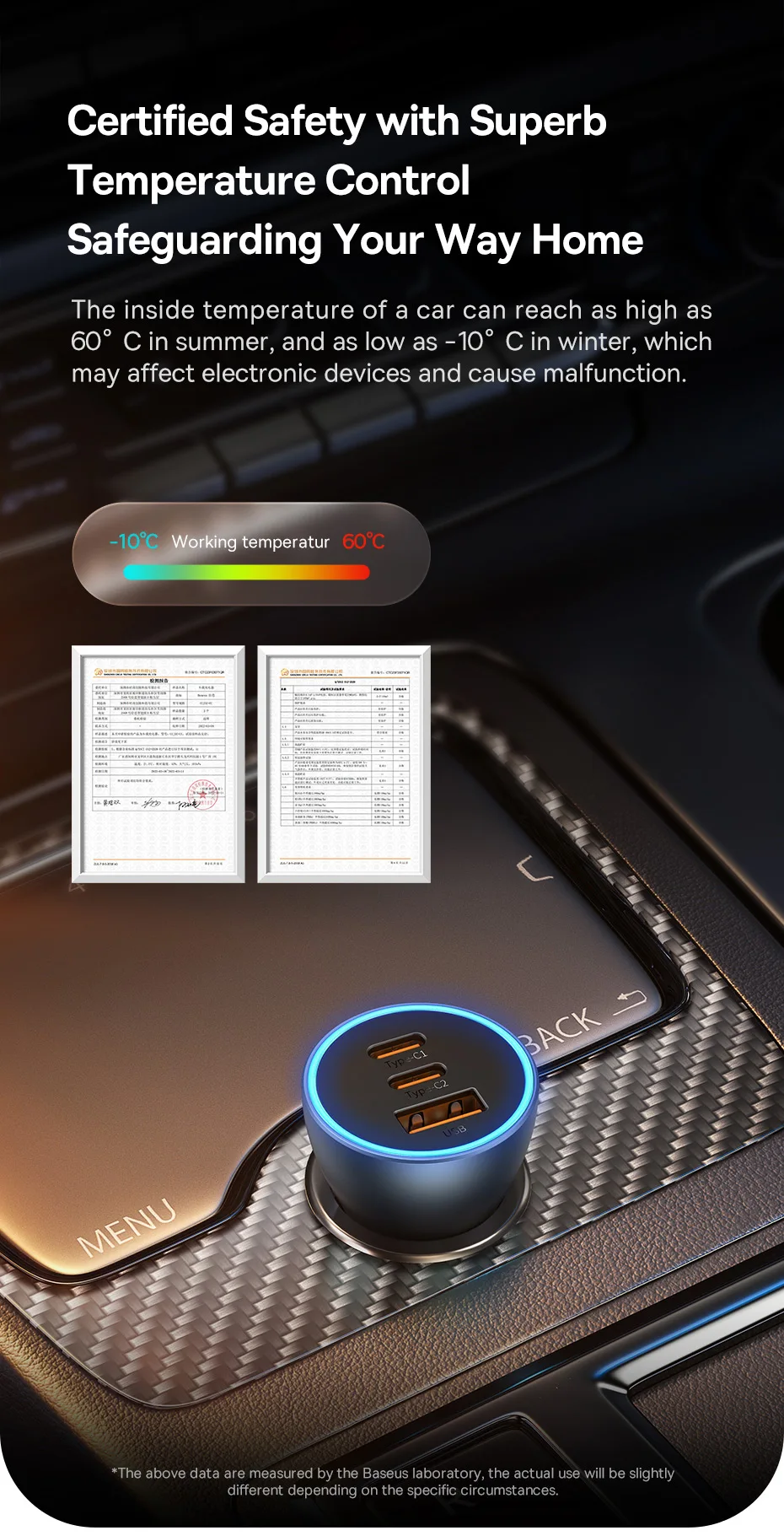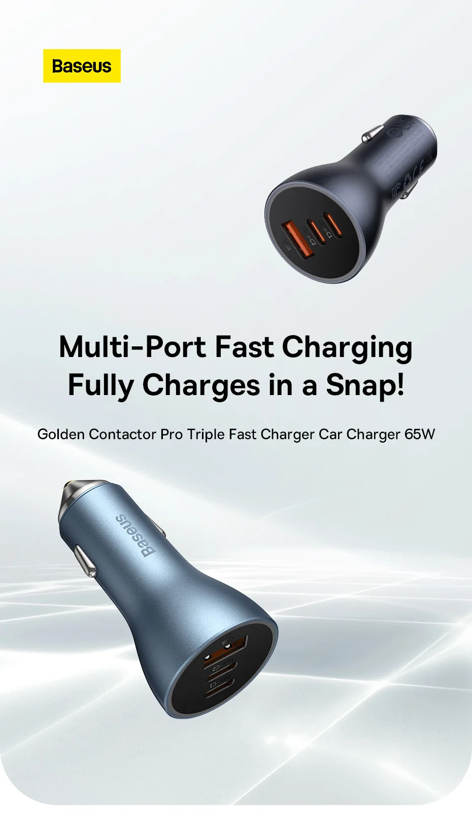 Baseus 65W Fast Charging Car Charger(2TypeC+USB)