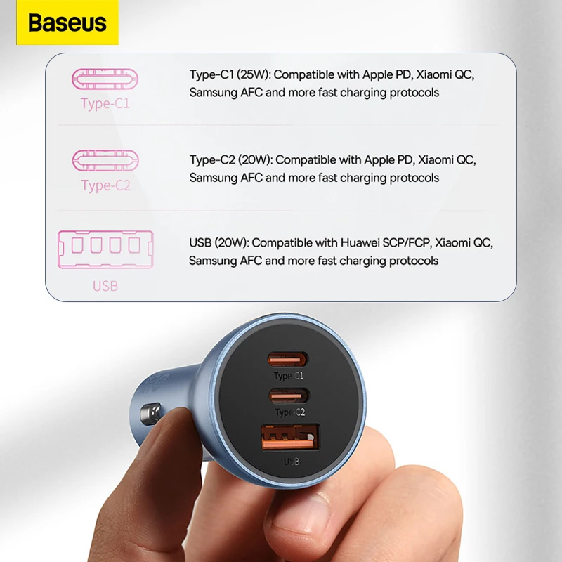 Baseus 65W Fast Charging Car Charger(2TypeC+USB)
