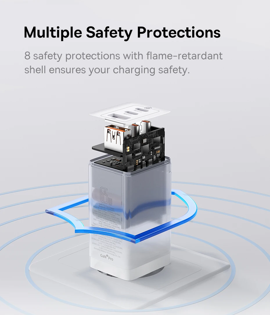 8 protecciones de seguridad con carcasa ignífuga garantiza su seguridad de carga.
