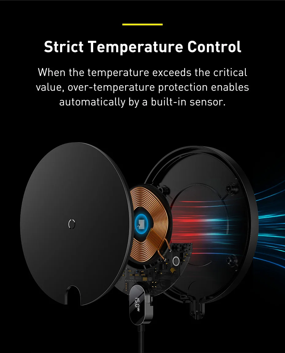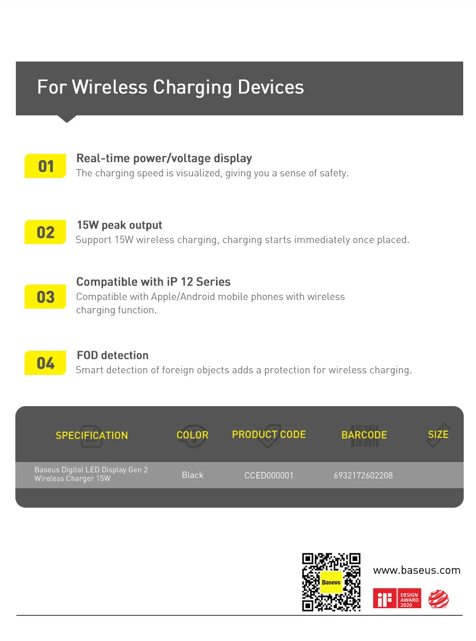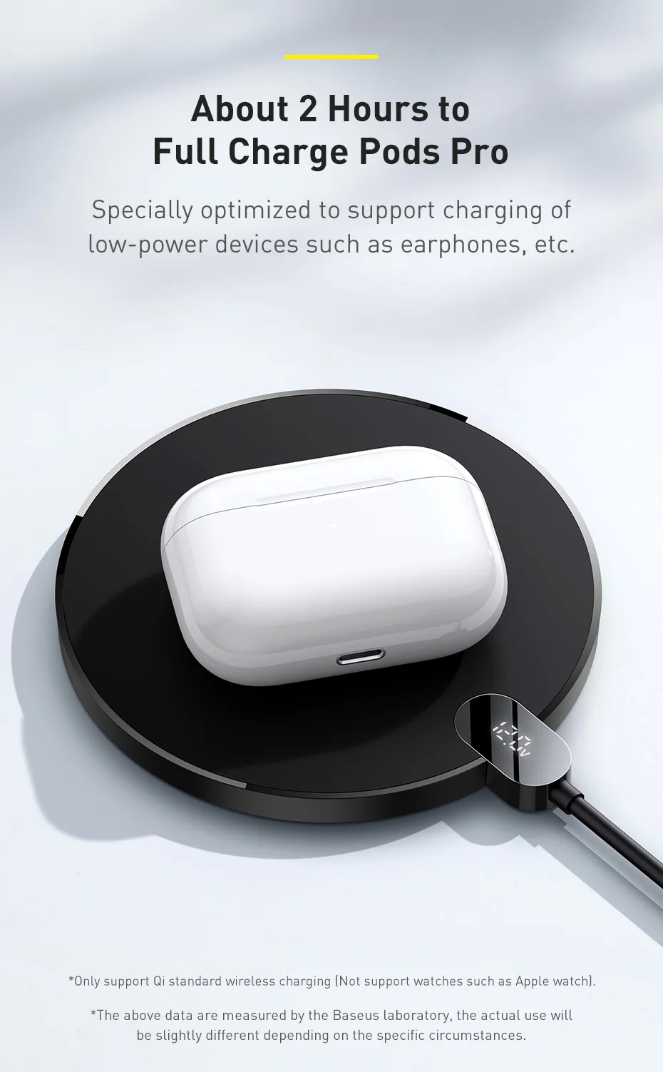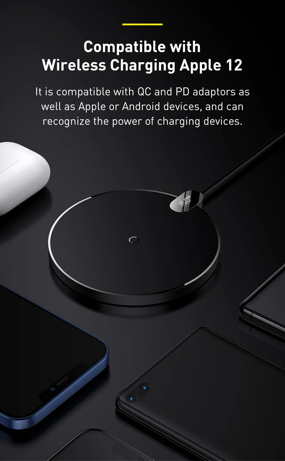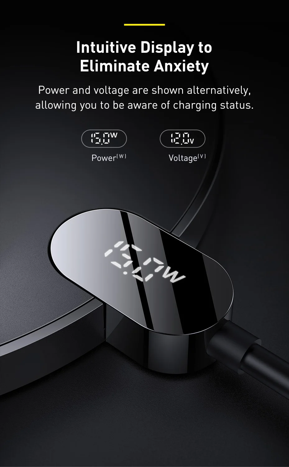 Comprar Baseus-cargador inalámbrico de 15W, almohadilla de carga rápida con pantalla Digital LED para iPhone 13, 12, 11 Pro Max, Samsung, Xiaomi Mi, Huawei