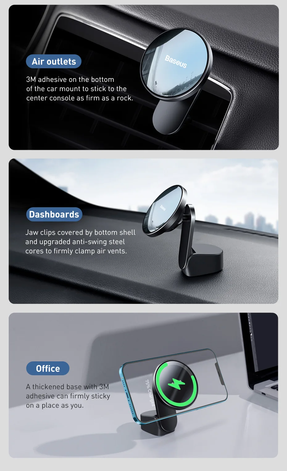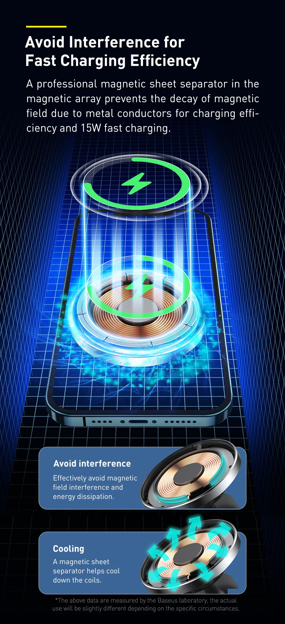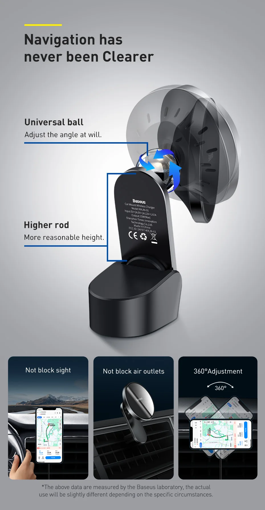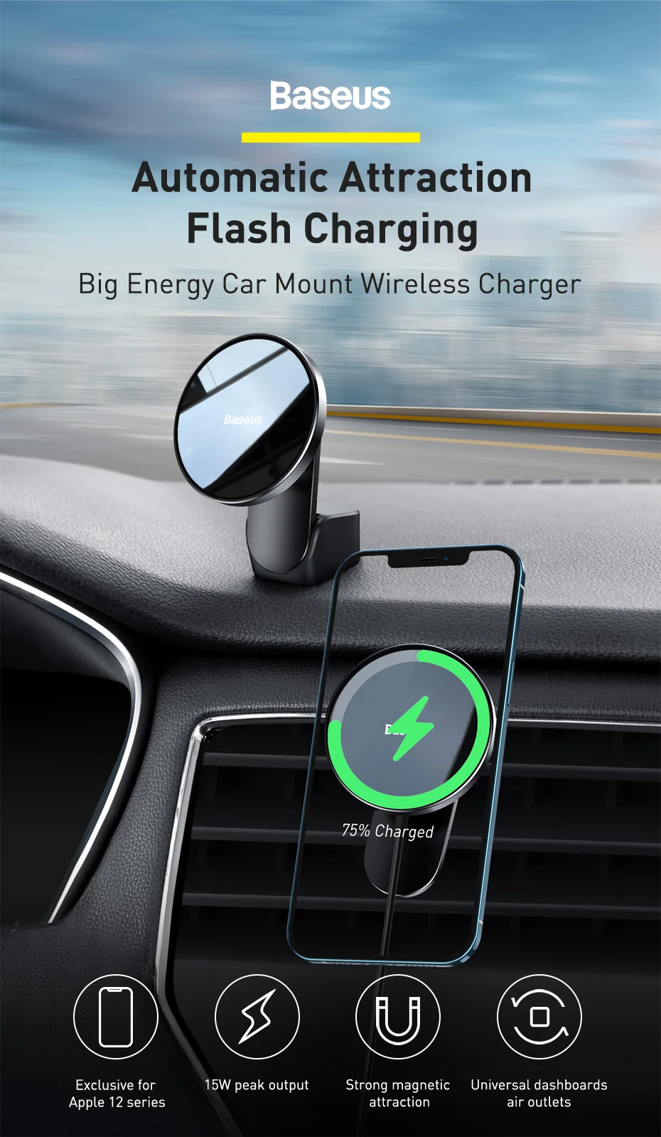 Comprar Baseus-cargador inalámbrico de 15W para coche, soporte magnético de succión central para salpicadero, carga inalámbrica para iPhone 12, 13, 14 pro