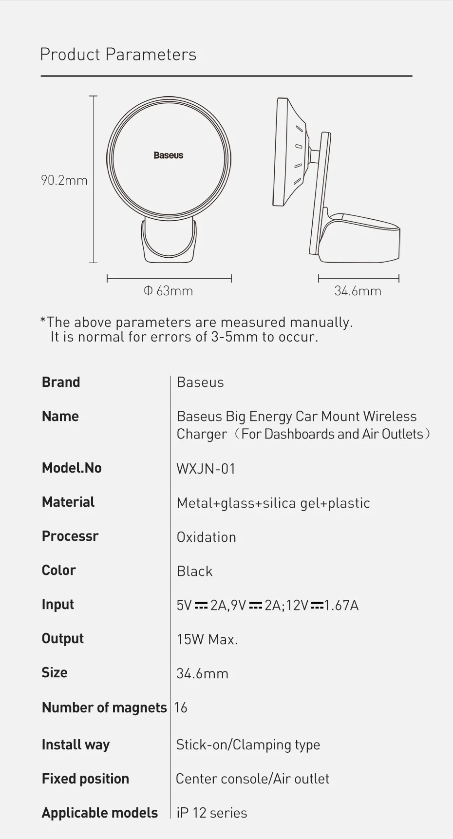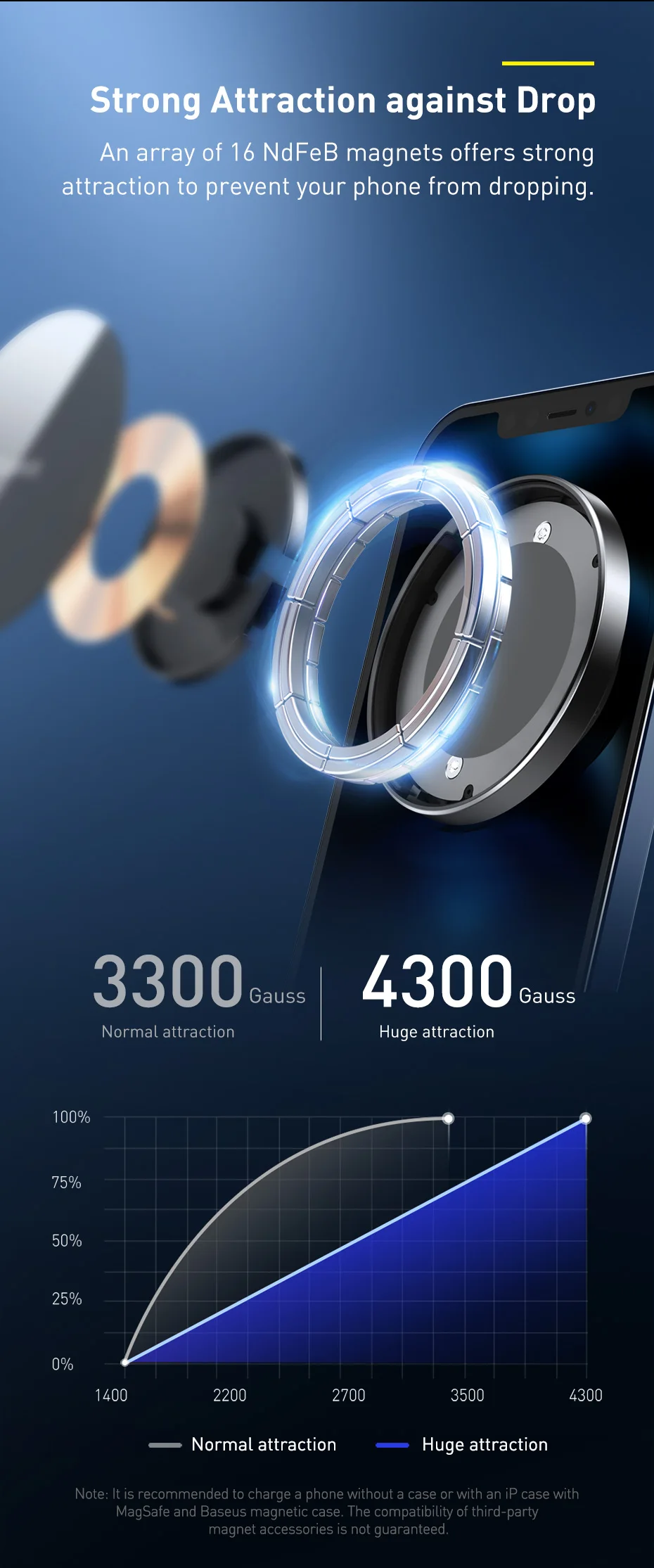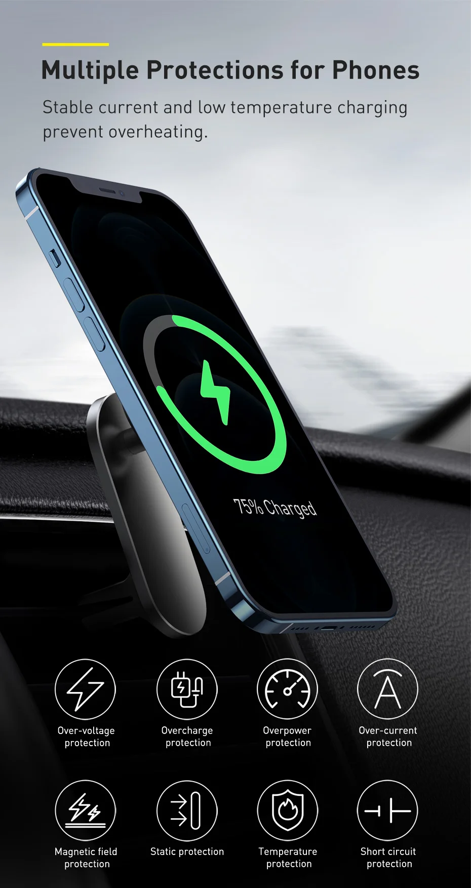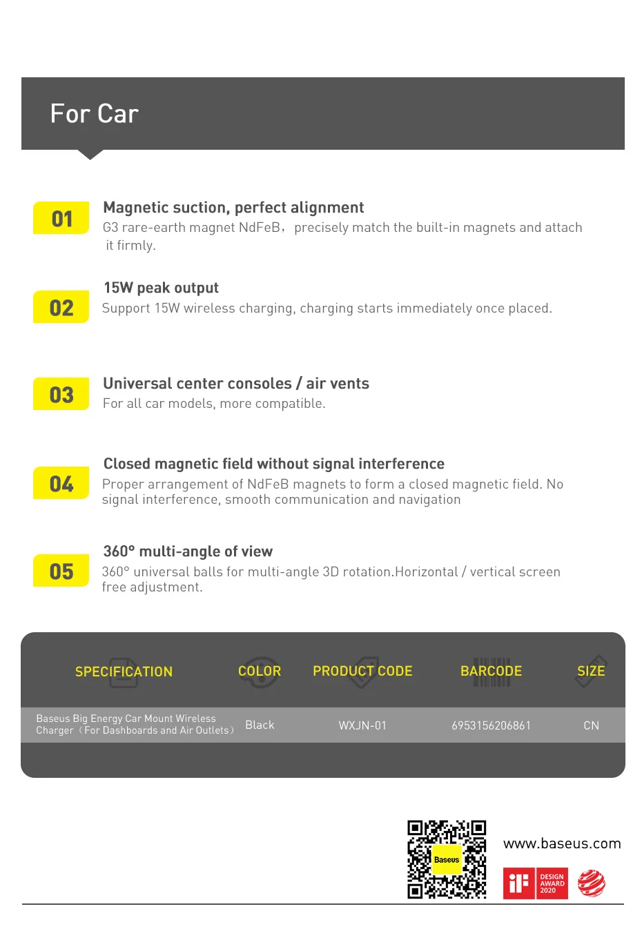 Comprar Baseus-cargador inalámbrico de 15W para coche, soporte magnético de succión central para salpicadero, carga inalámbrica para iPhone 12, 13, 14 pro