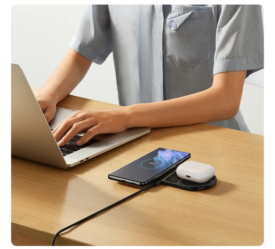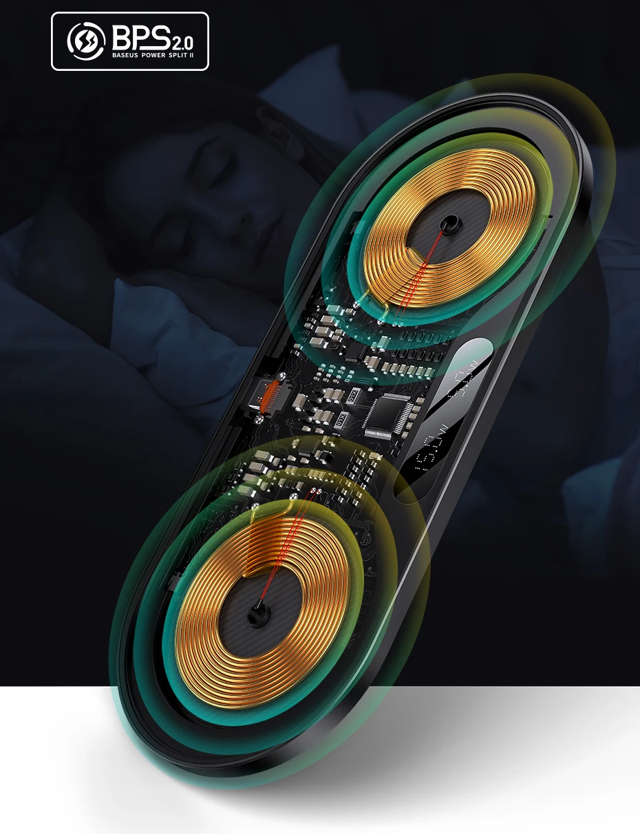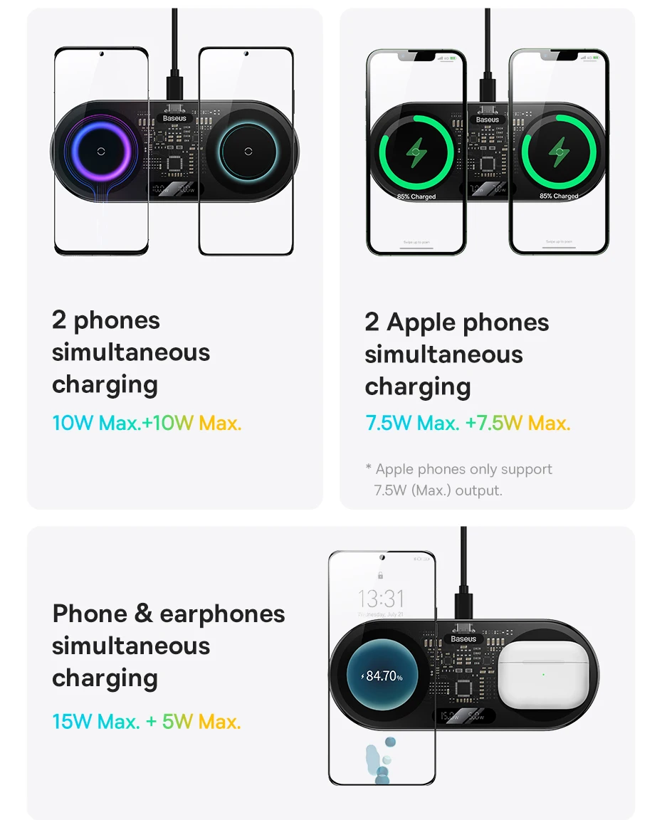 Comprar Baseus-cargador inalámbrico Dual de 20W para móvil, almohadilla de carga rápida Qi para iPhone 14 13, Airpod Pro, Samsung, Xiaomi 12 Pro