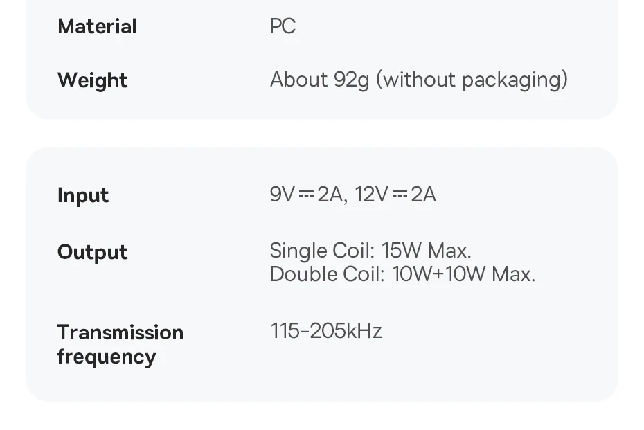 • Proporciona 15W para Oneplus 9 Pro / Pixel 4 / Pixel 4 XL / LG V50 / LG V40 / LG V30 / LG G8 / Sony Xperia XZ3