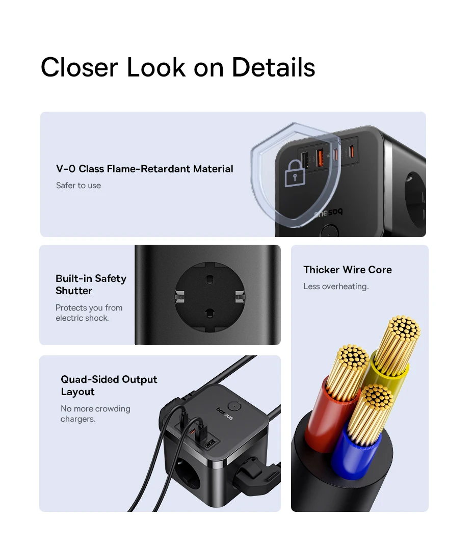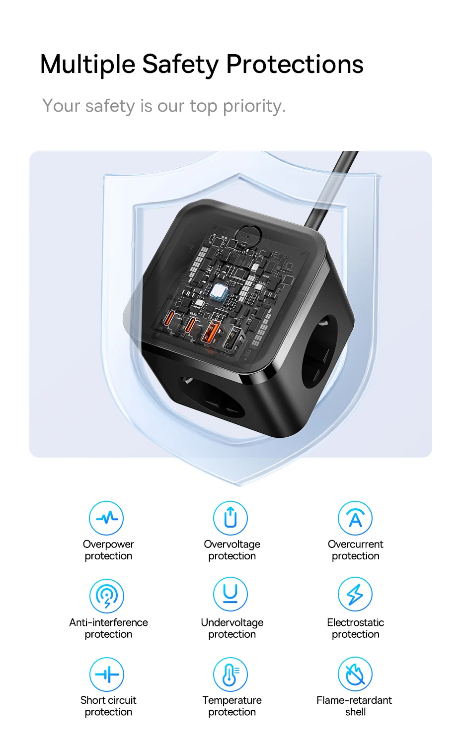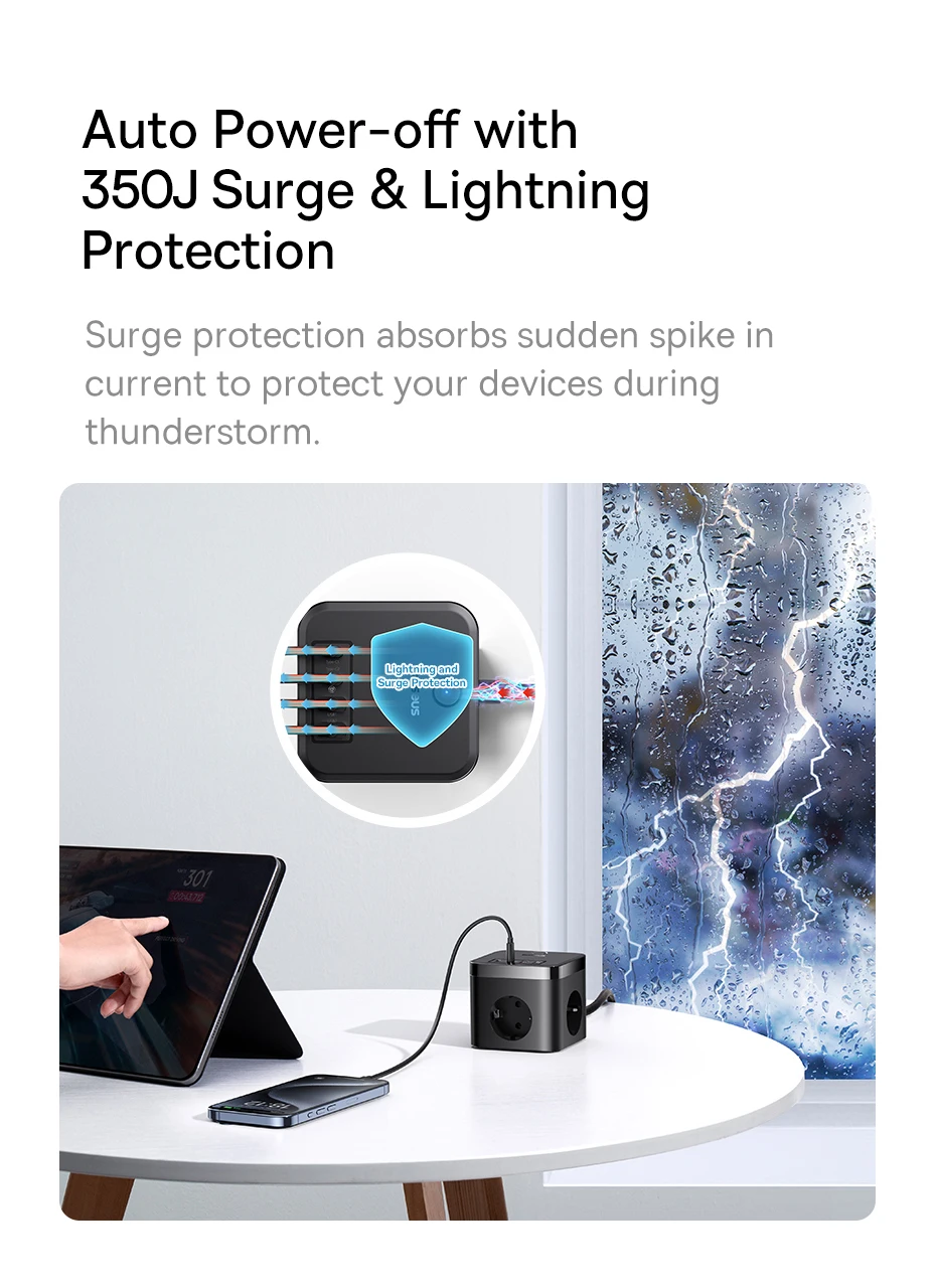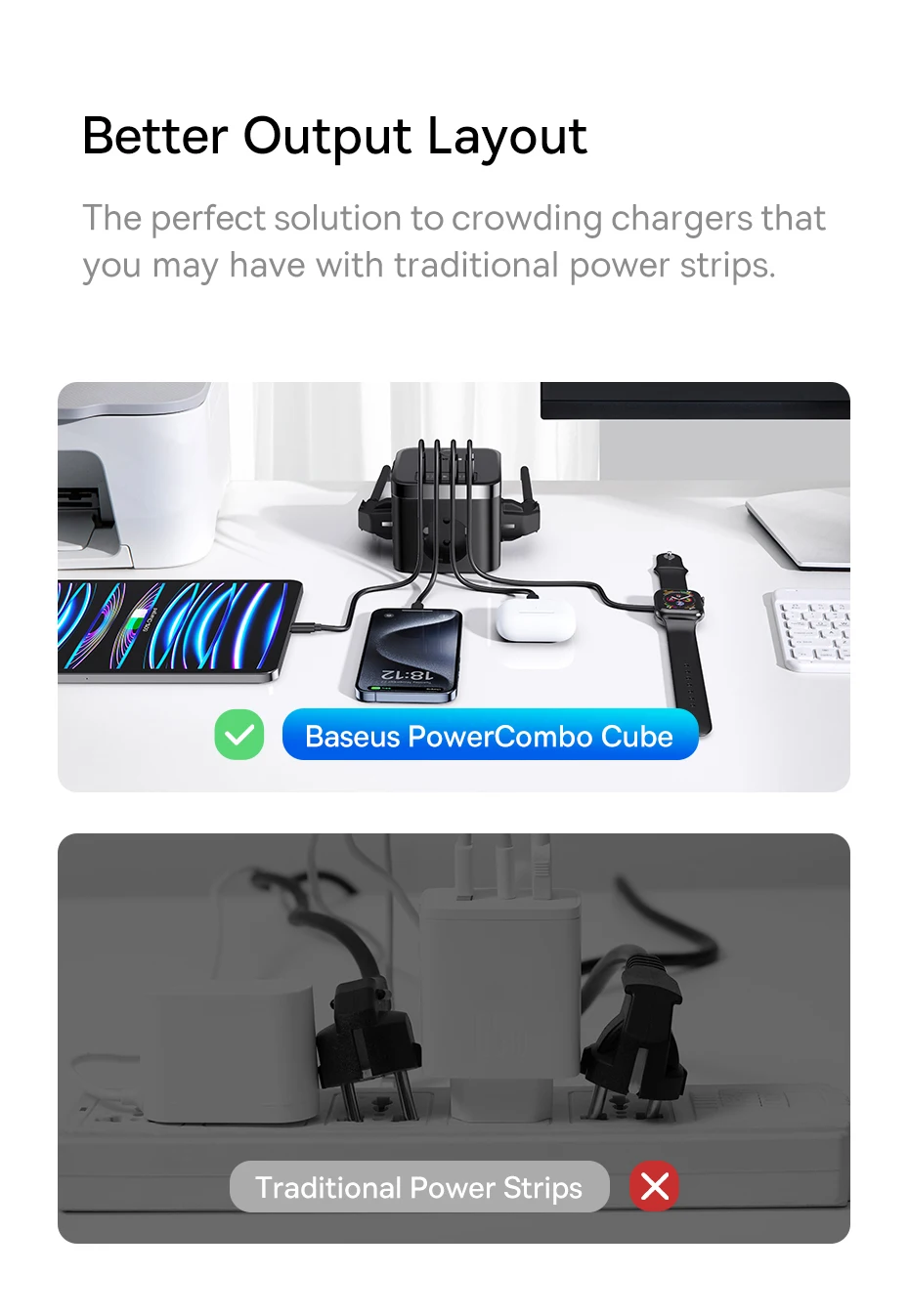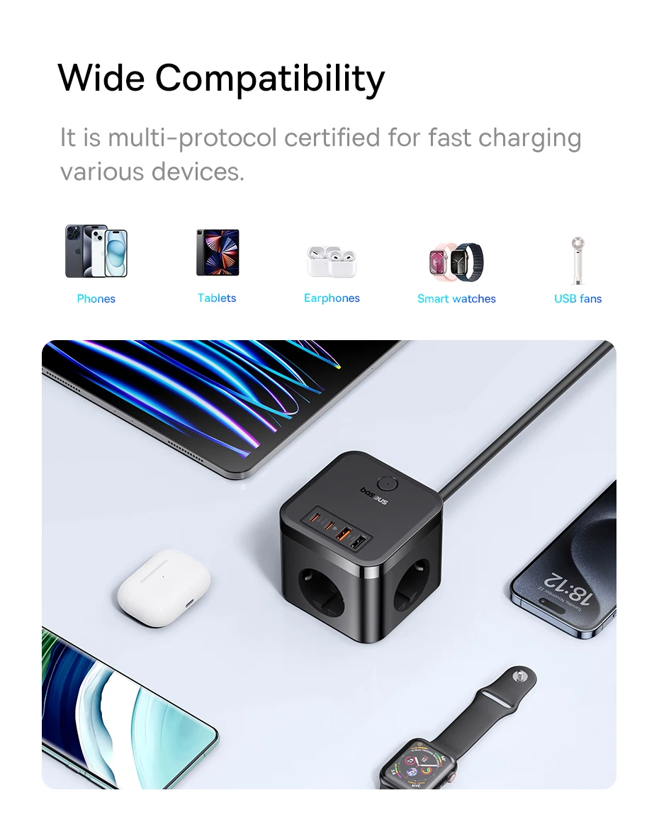 Comprar Baseus-cargador rápido de 30W, regleta 3AC, estación de carga de escritorio con protección contra sobretensiones y rayos, para tabletas iPhone 15 14