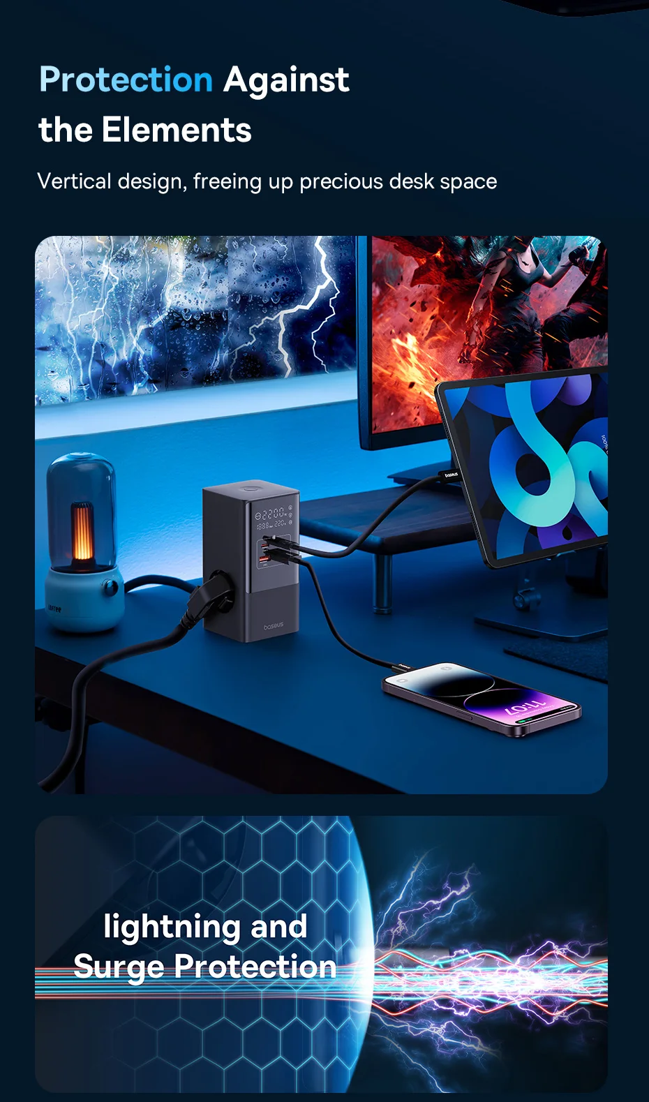 • Protección contra sobretensiones :El protector contra sobretensiones 1200j garantiza que sus dispositivos estén a salvo de las fluctuaciones de potencia.