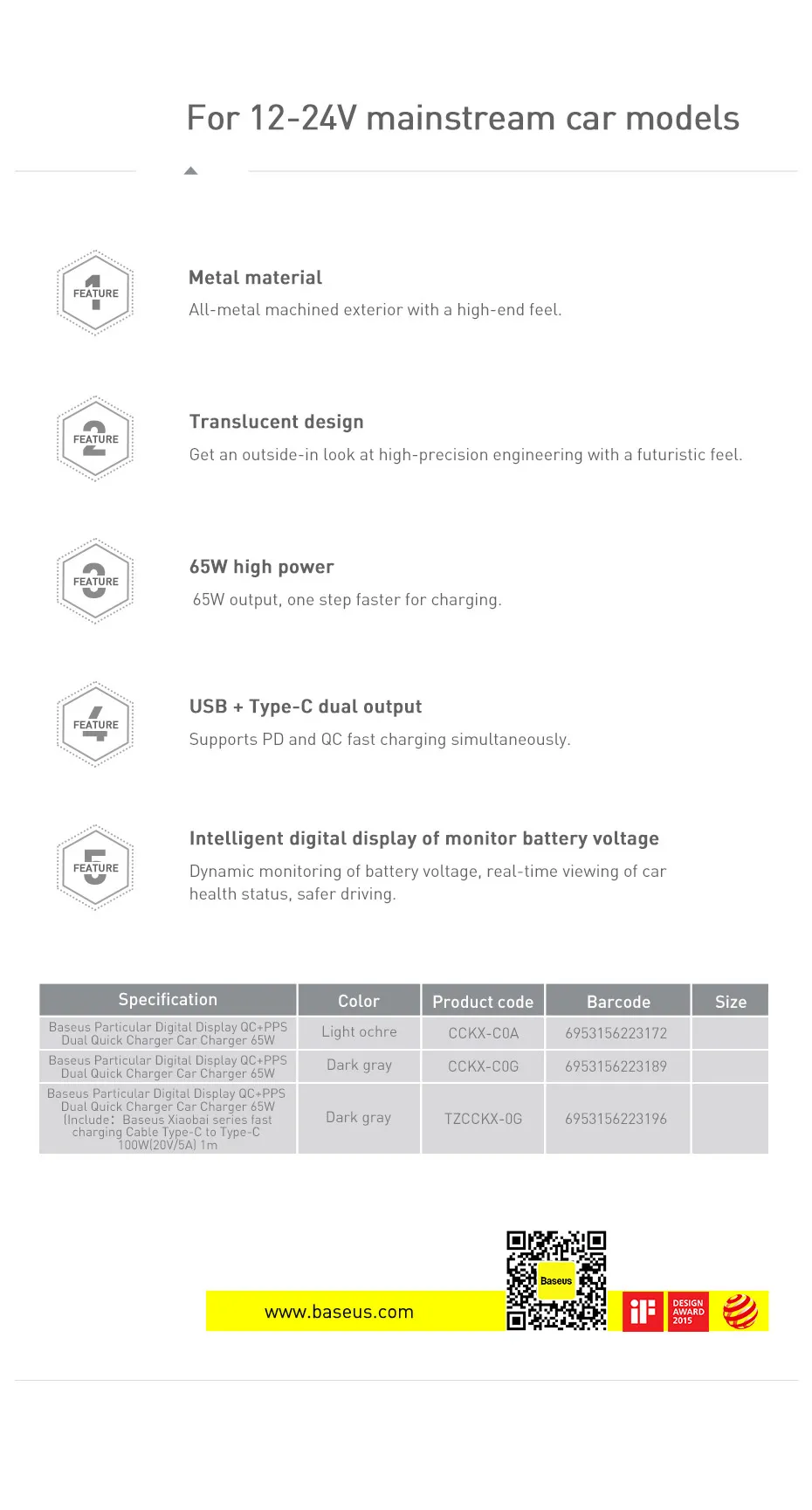 Comprar Baseus-cargador de teléfono para coche, dispositivo de carga rápida QC 4,0, 3,0, QC4.0, USB tipo C, PD, PPS, para iPhone, Xiaomi, Samsung, 65W