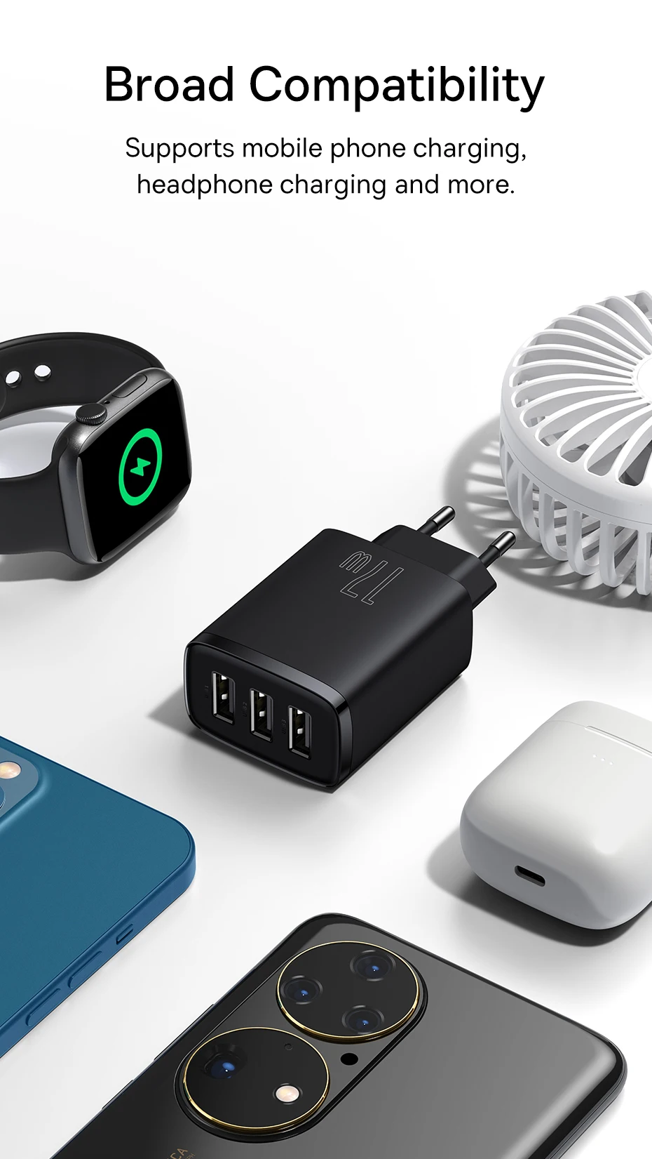 Comprar Baseus-cargador USB de 17W, 3 USB de carga rápida para teléfono móvil, adaptador de carga de pared portátil de múltiples puertos para iPhone Xiaomi