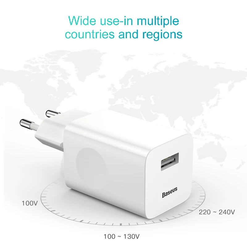 Baseus-cargador USB de 24W, carga rápida 3,0 QC3.0, adaptador de cargador de teléfono de pared USB de carga rápida para iPhone 12 11 Pro XS Max XR Xiaomi