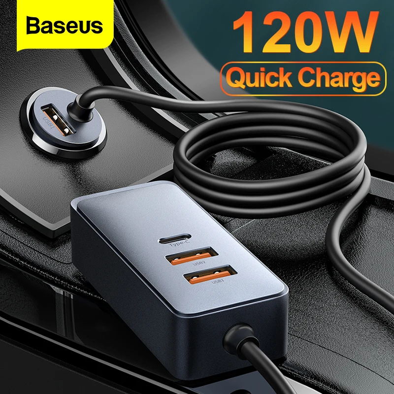 Comprar Baseus-cargador USB para coche, dispositivo de carga rápida de 120W, 4 puertos, QC 3,0 PD, 20W, tipo C, para iPhone 12 Pro, Xiaomi, Samsung y Tablet
