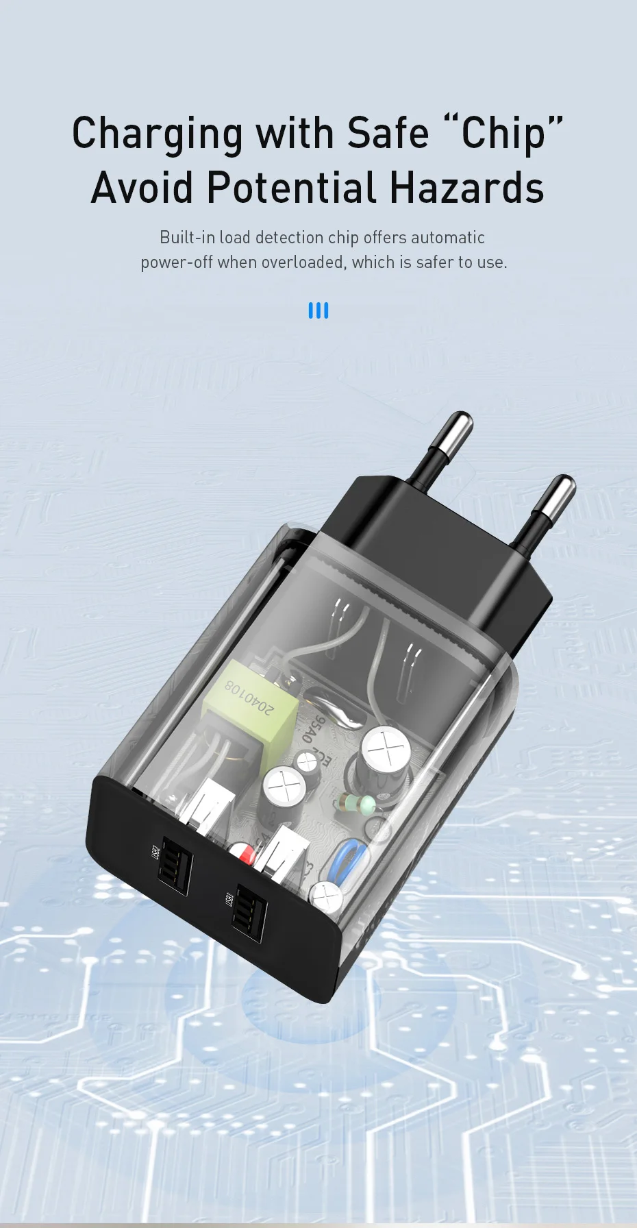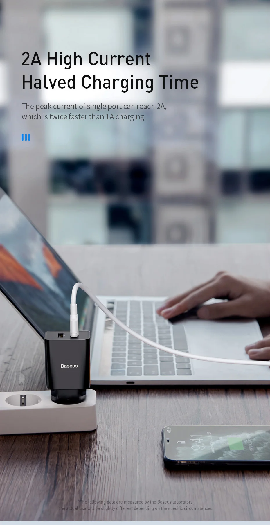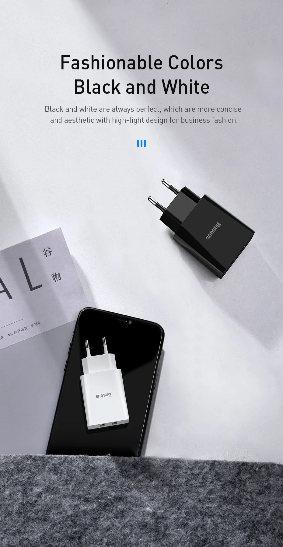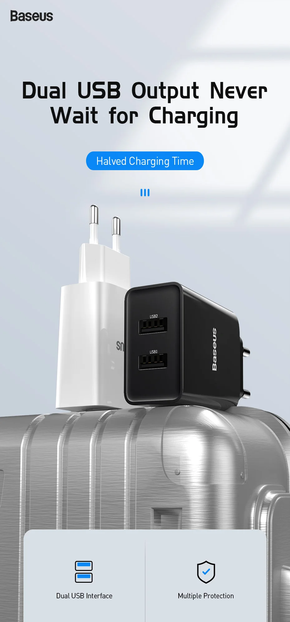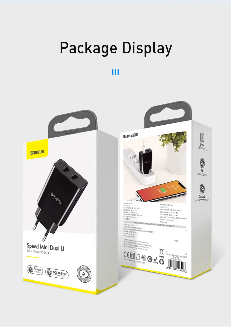 Comprar Baseus-cargador USB Dual con enchufe europeo, cargador de pared 2.1A, Mini adaptador de carga máxima para teléfono móvil, cargador de viaje para iPhone