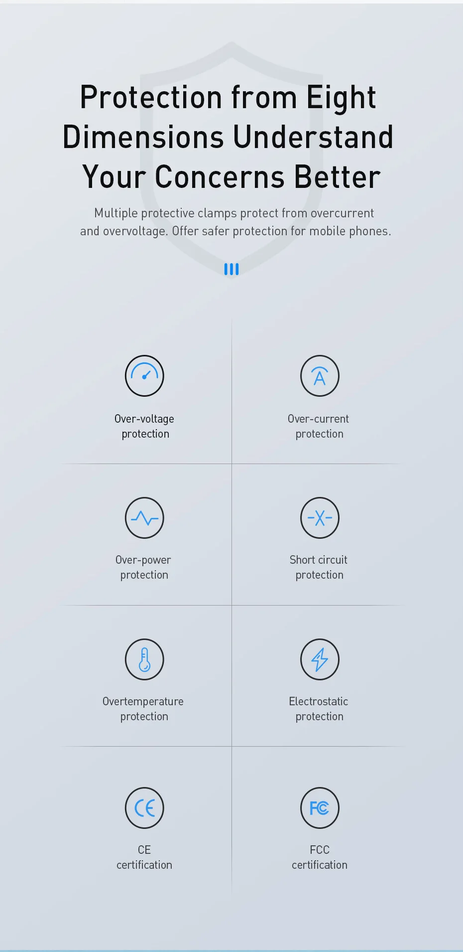 Multiple protective clamps protect from overcurrentand overvoltage.Offer safer protection for mobile phones.