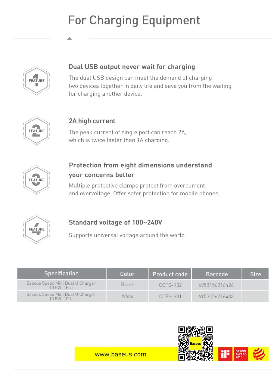 The dual USB design can meet the demand ofchargingtwo devices together in daily life and