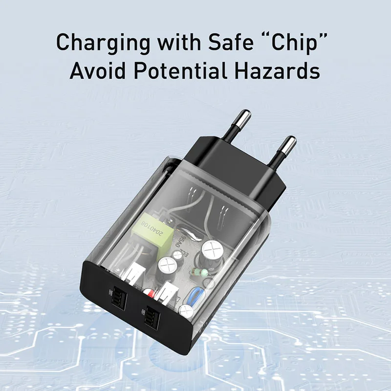 Comprar Baseus-cargador USB Dual con enchufe europeo, cargador de pared 2.1A, Mini adaptador de carga máxima para teléfono móvil, cargador de viaje para iPhone