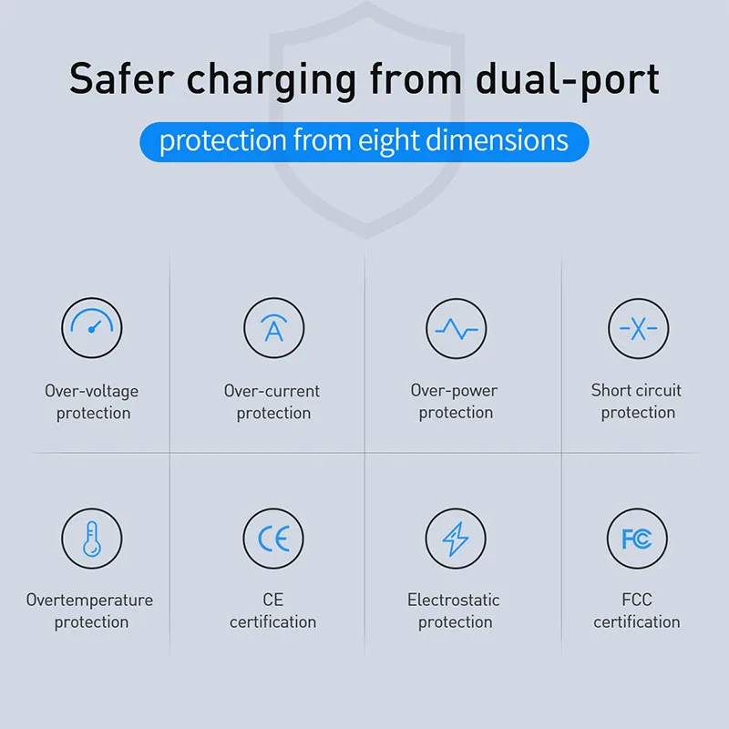 The peak current of single port can reach 2A,which is twice faster than 1A charging.