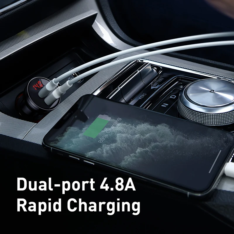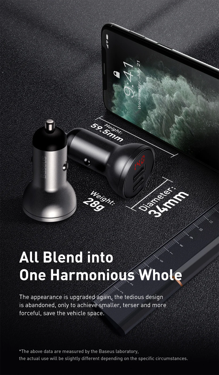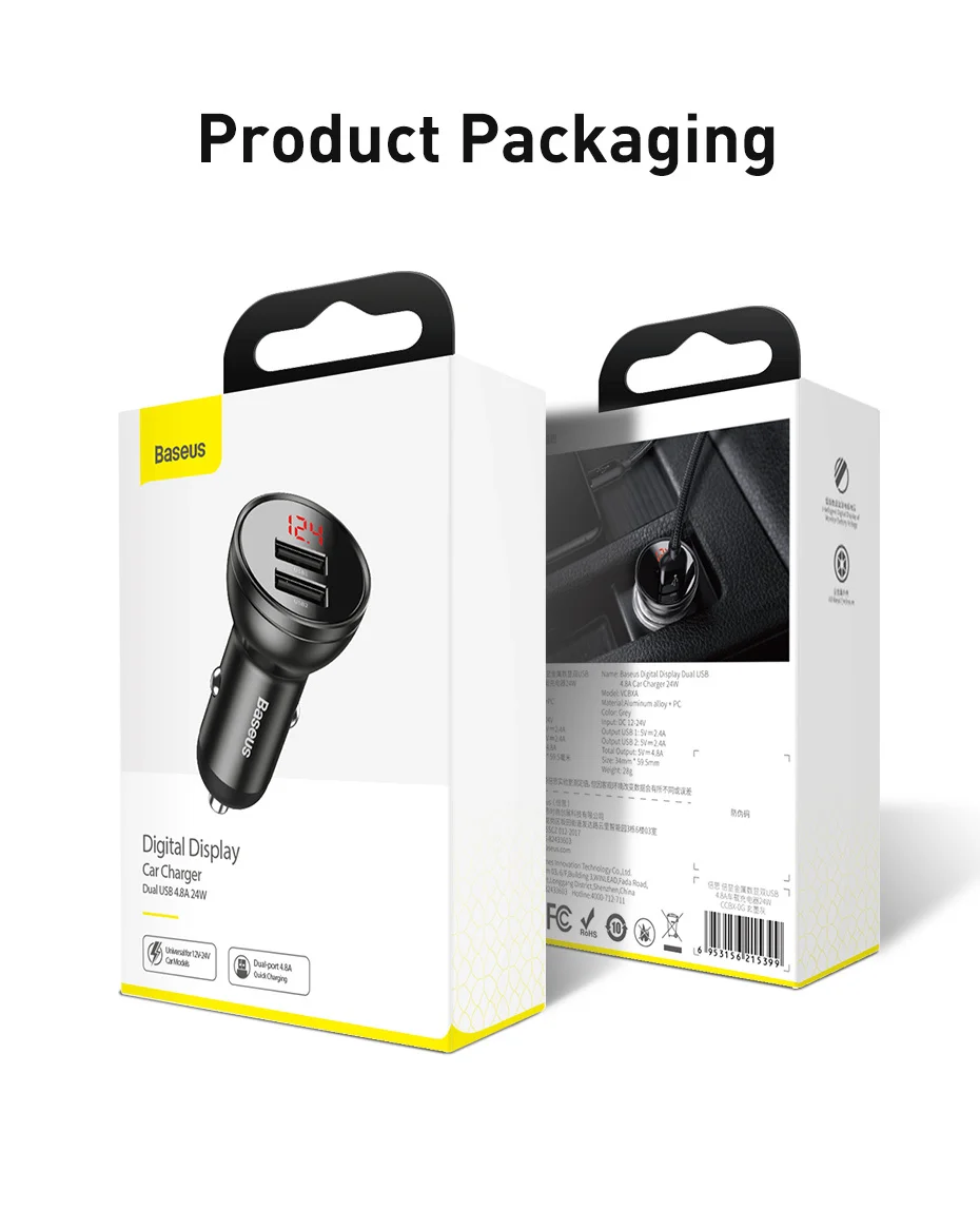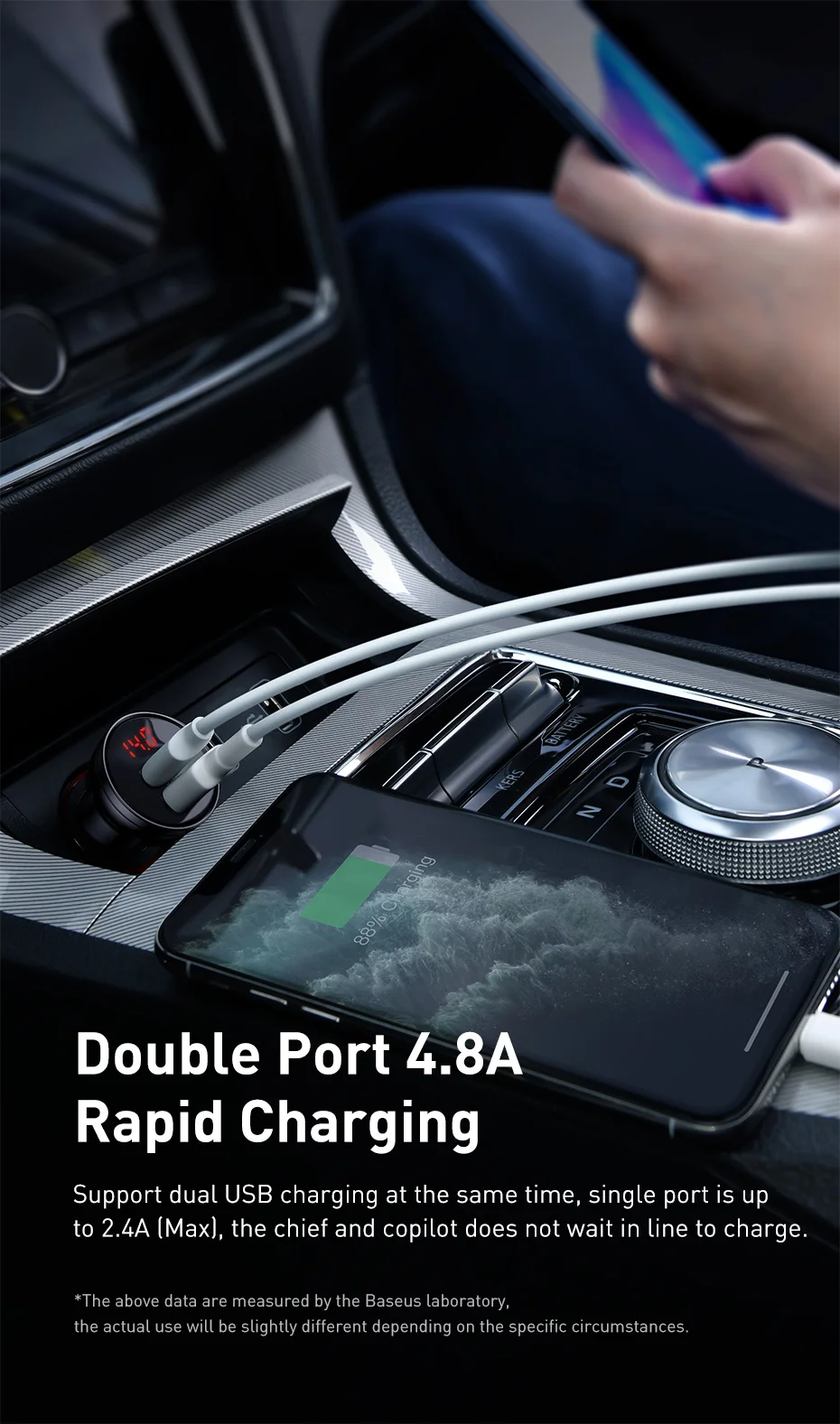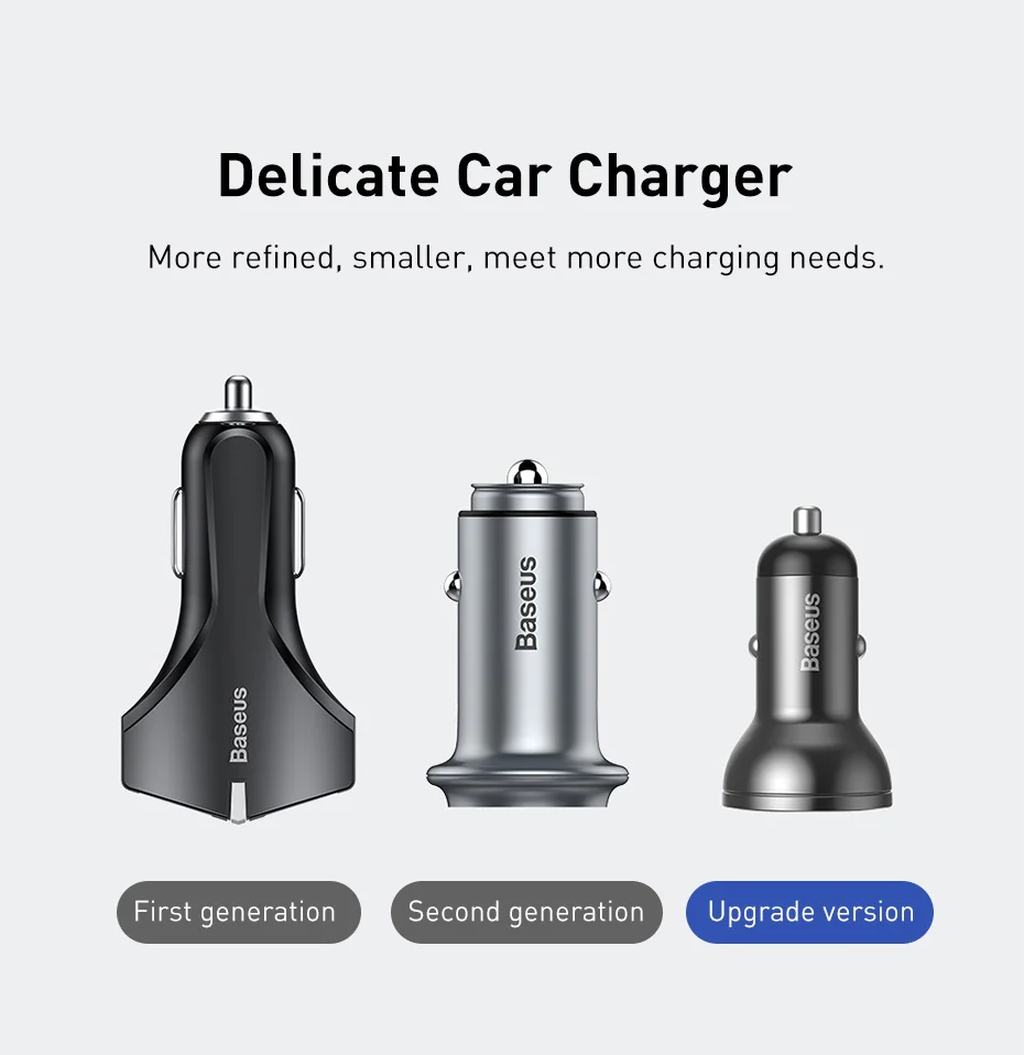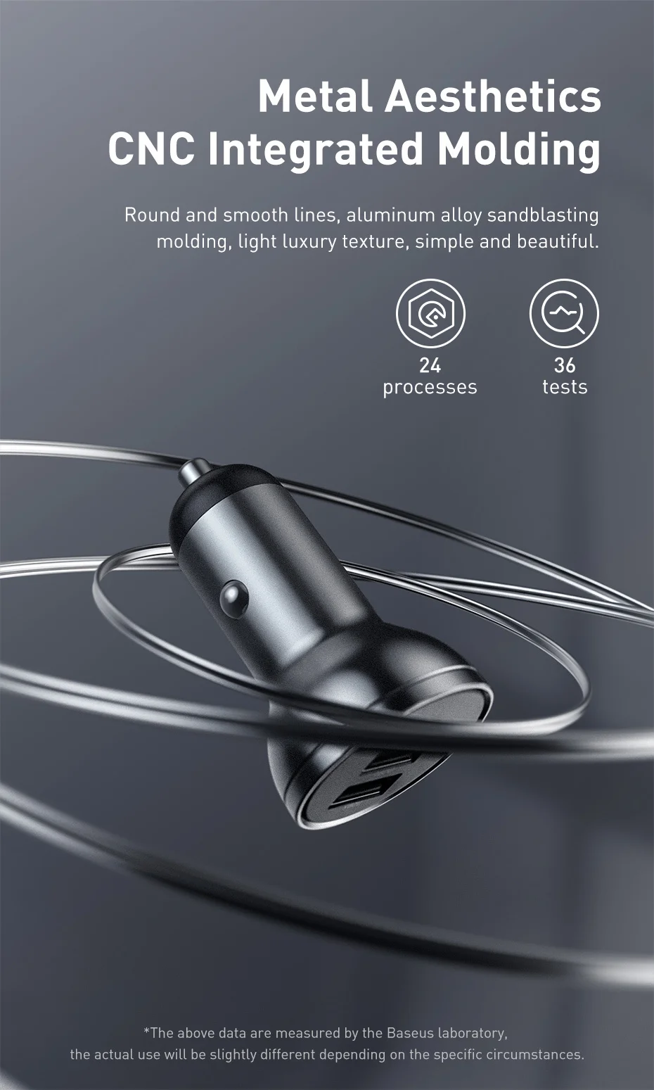 Comprar Baseus-cargador USB Dual de Metal para coche, adaptador de carga rápida para teléfono móvil iPhone y Xiaomi, 24W, 4.8A