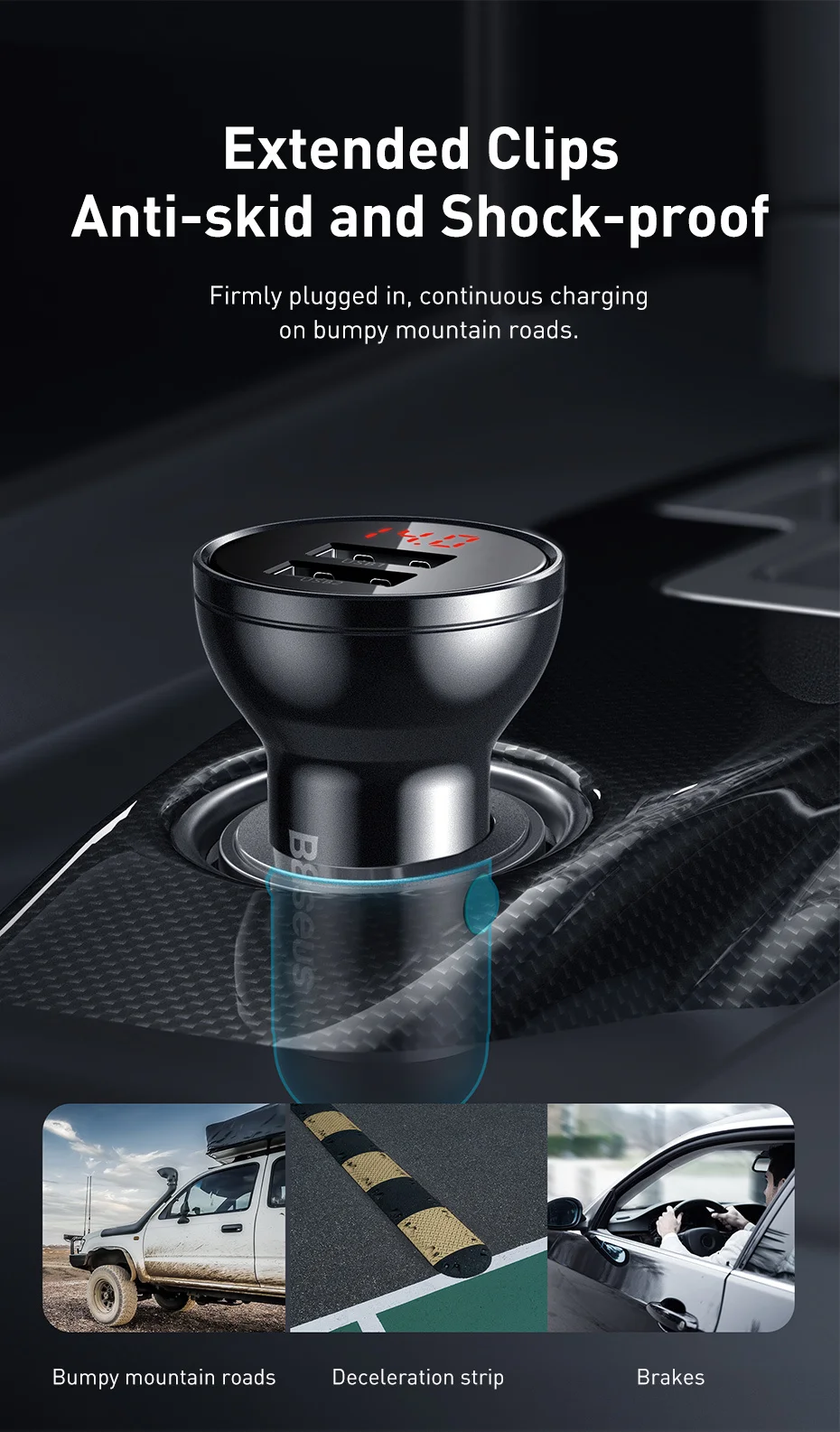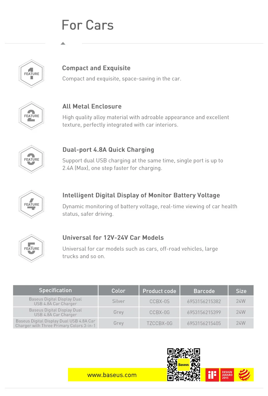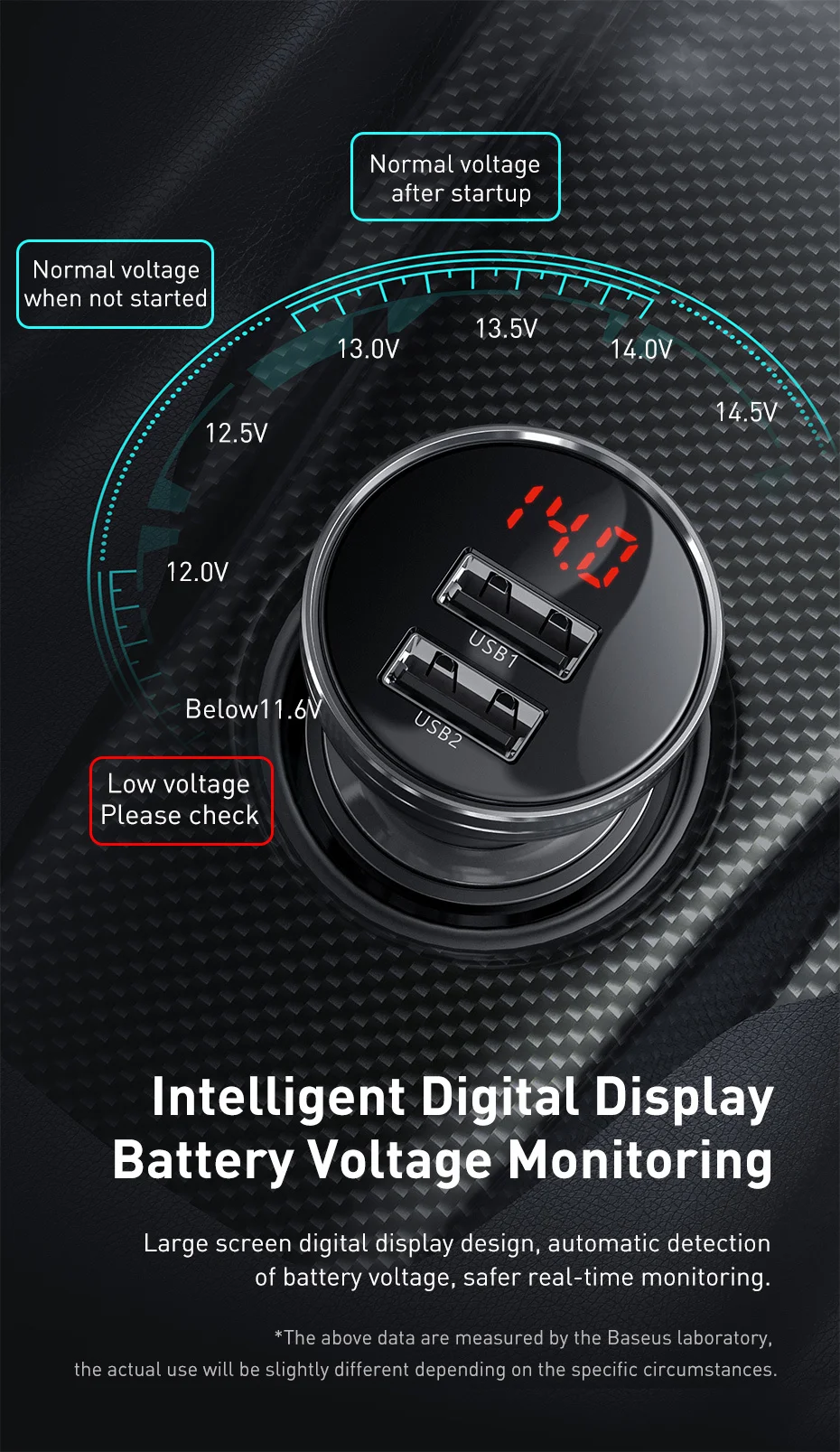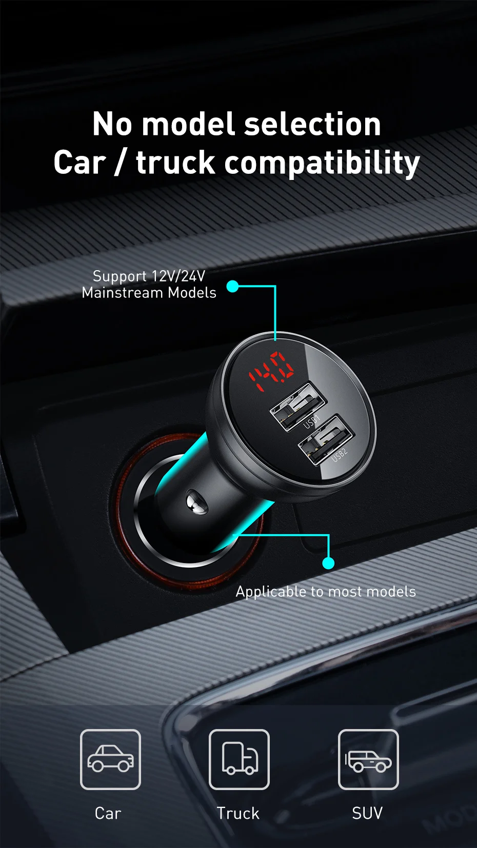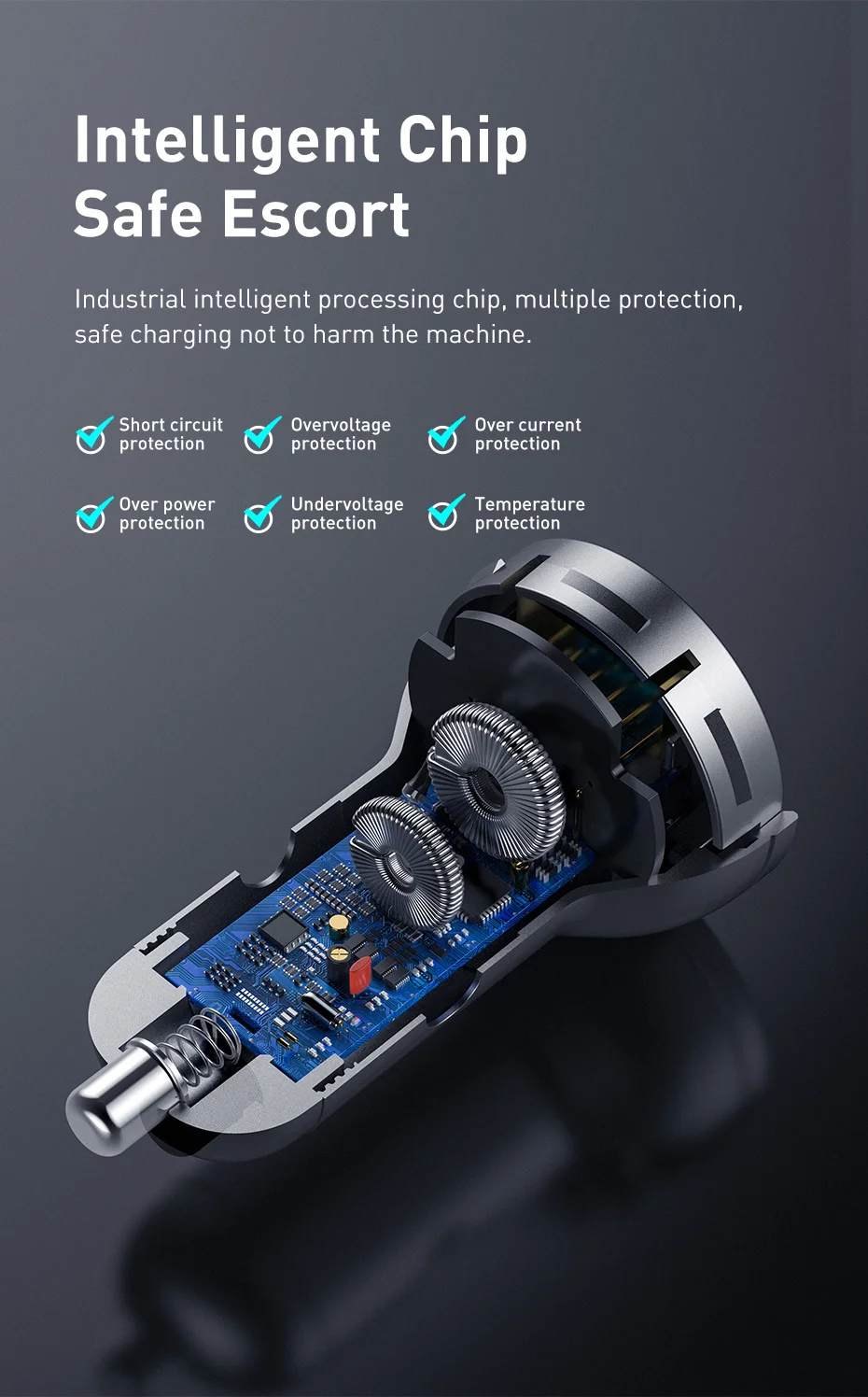 Comprar Baseus-cargador USB Dual de Metal para coche, adaptador de carga rápida para teléfono móvil iPhone y Xiaomi, 24W, 4.8A