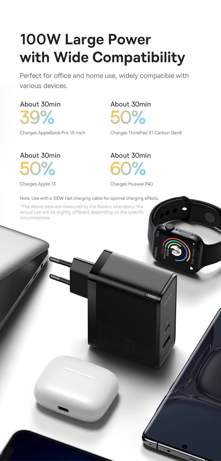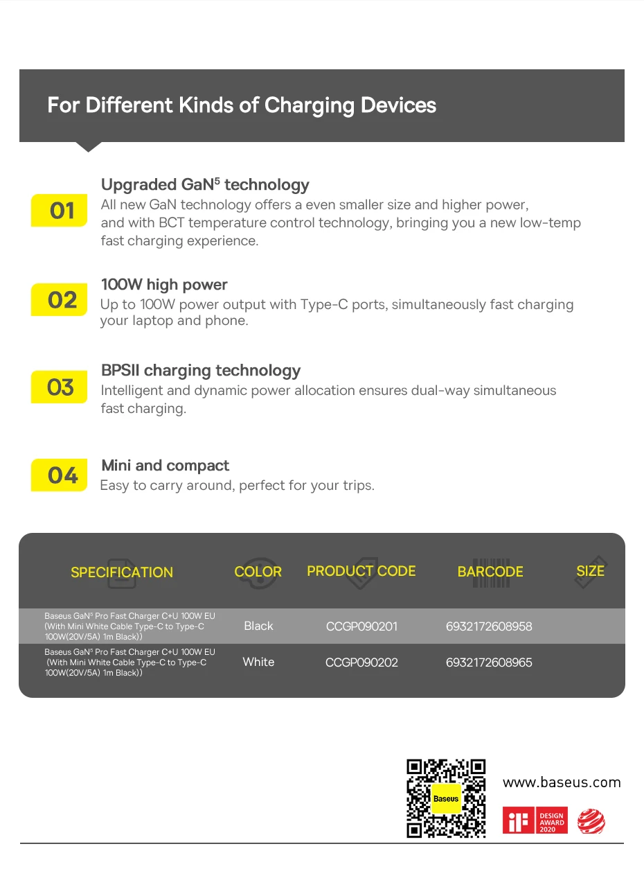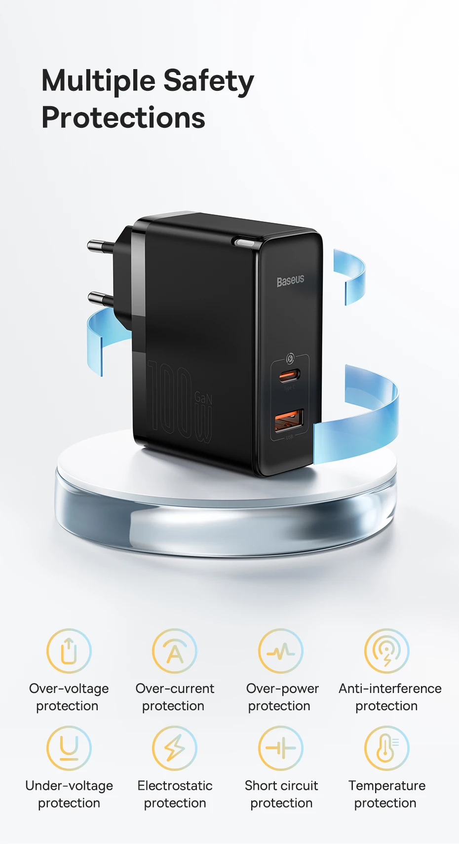 Comprar Baseus-cargador USB GaN 5 Pro de 100W, dispositivo de carga rápida, PD, QC, 4,0, 3,0, USB-C, tipo C, para iPhone, xiaomi, mi, POCO, MacBook
