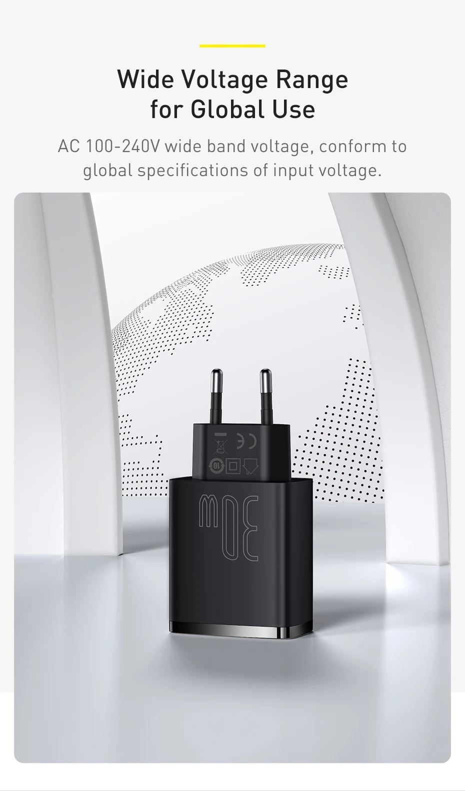 Comprar Baseus-cargador USB tipo C de 30W, adaptador de viaje para iphone 12, 13 pro, Huawei y Xiaomi