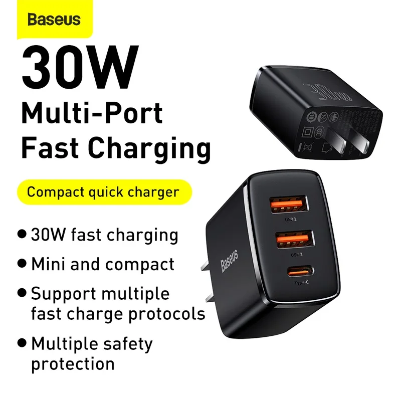 Comprar Baseus-cargador USB tipo C de 30W, adaptador de viaje para iphone 12, 13 pro, Huawei y Xiaomi
