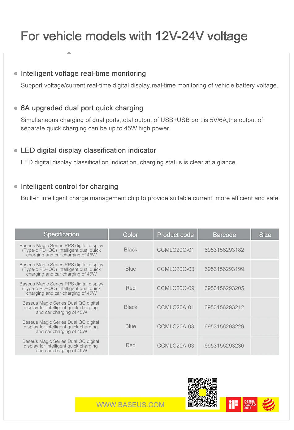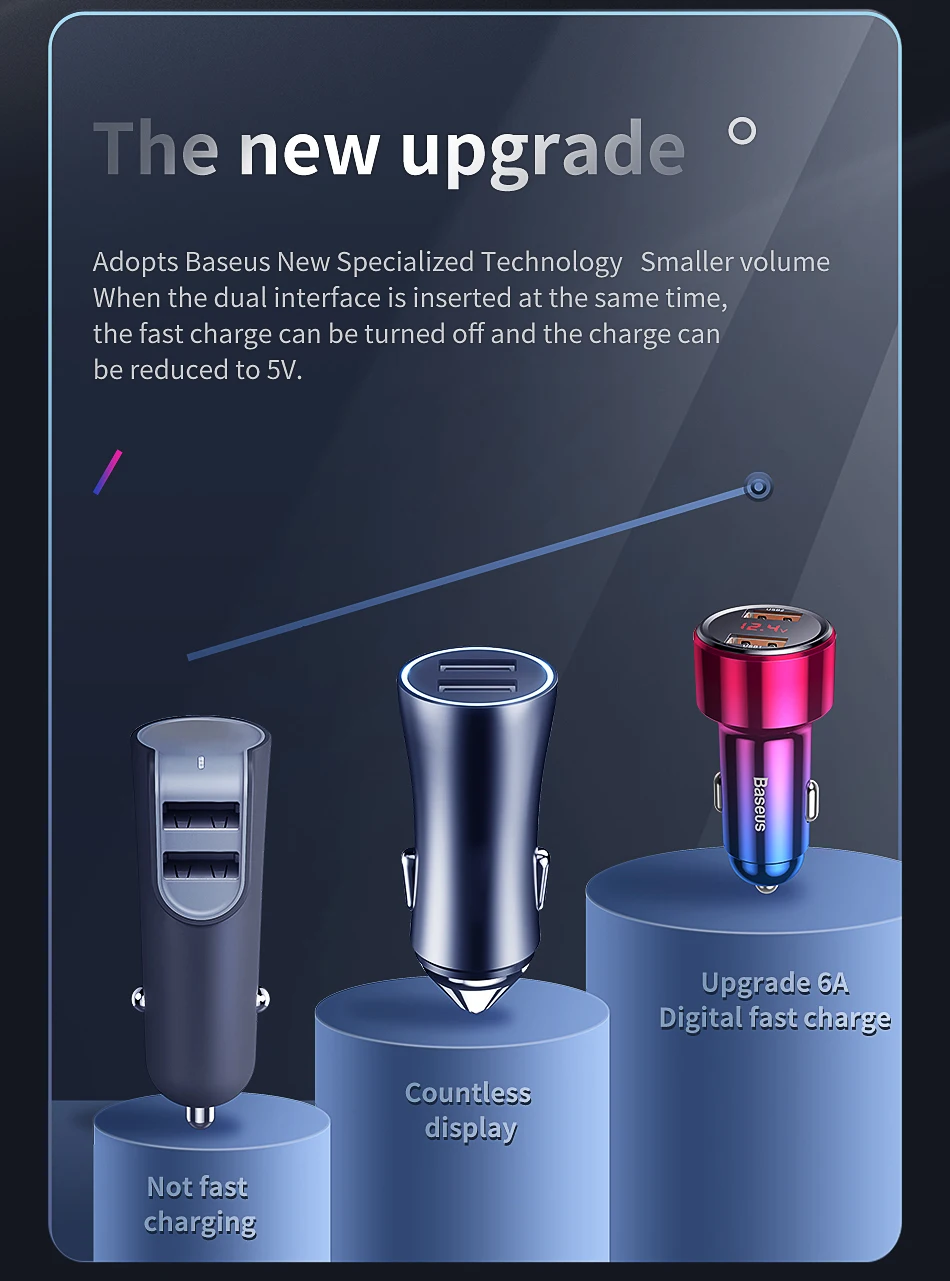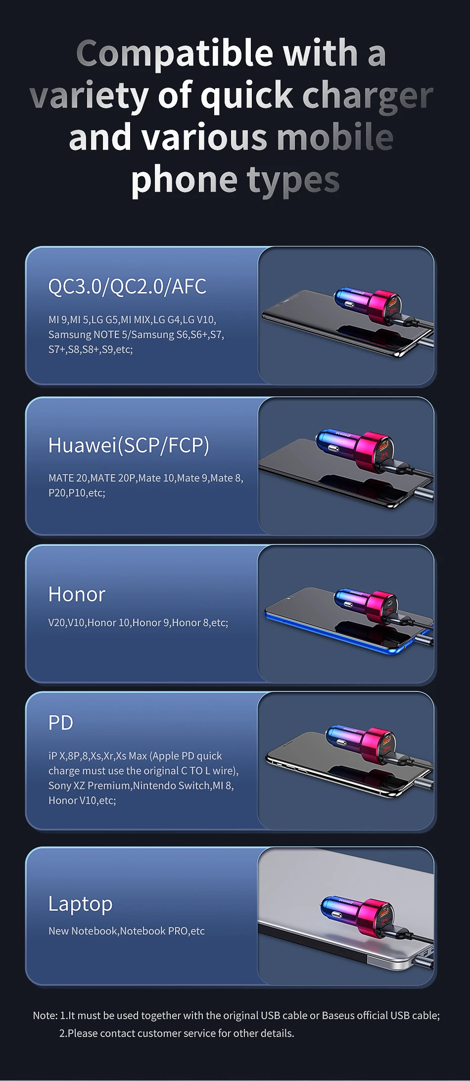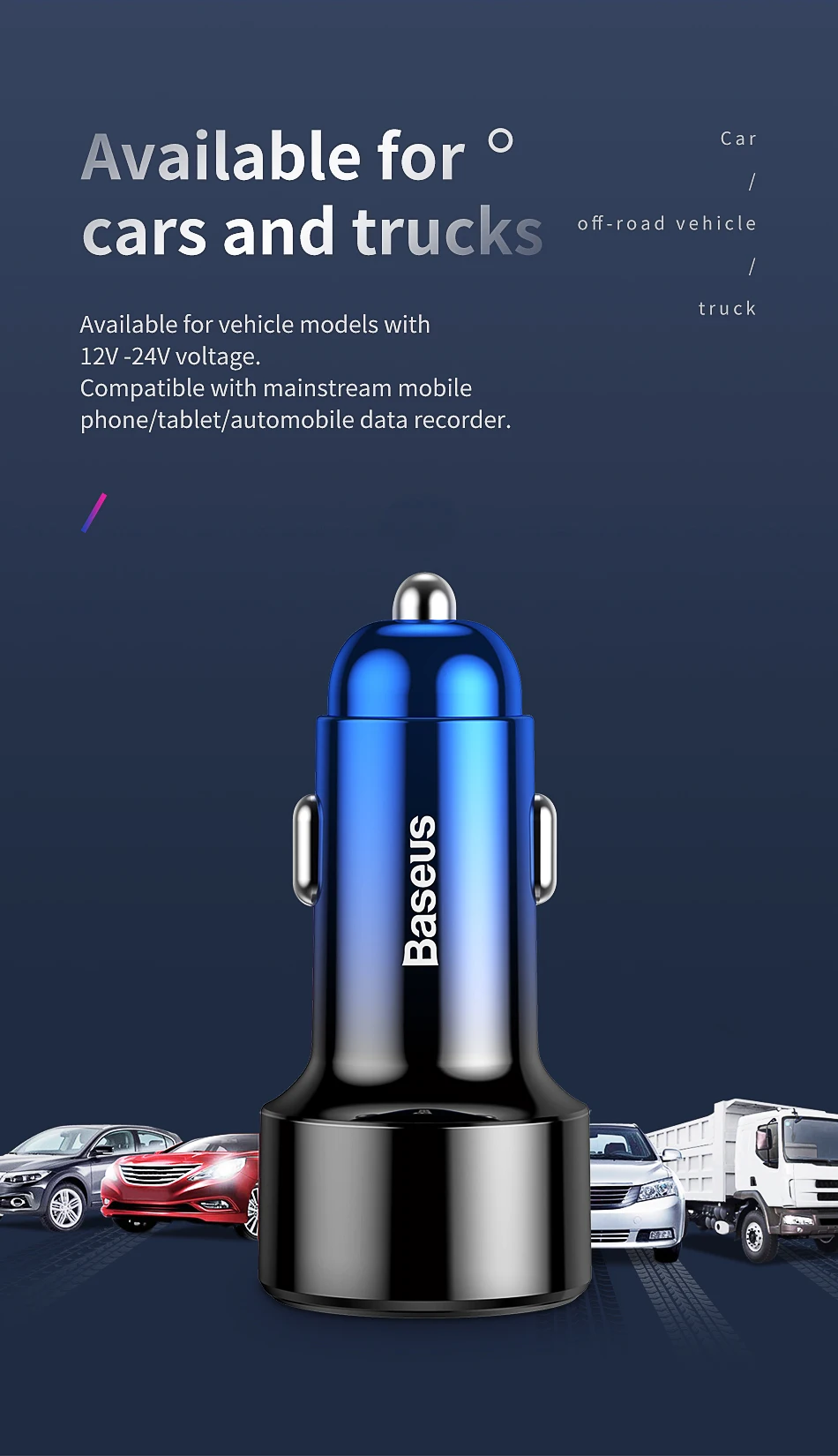 Comprar Baseus-cargador USB tipo C para coche, dispositivo de carga rápida QC PD 4,0, 3,0, 6A, para iPhone 12 Pro, Xiaomi y Huawei, 45W