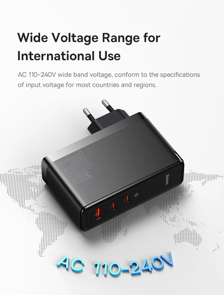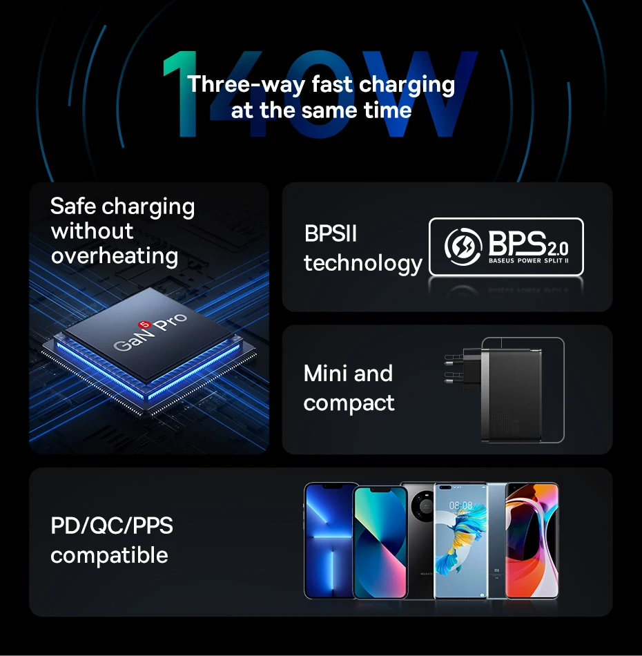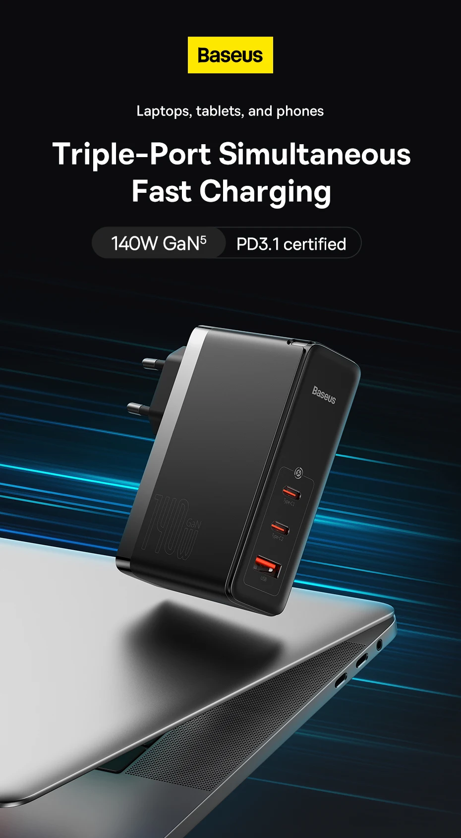 Comprar Baseus-cargador USB tipo C GaN 5 Pro, 140W, PD 3,1 QC, carga rápida 4,0 USBC, para MacBook Pro, iPhone 14, Xiaomi
