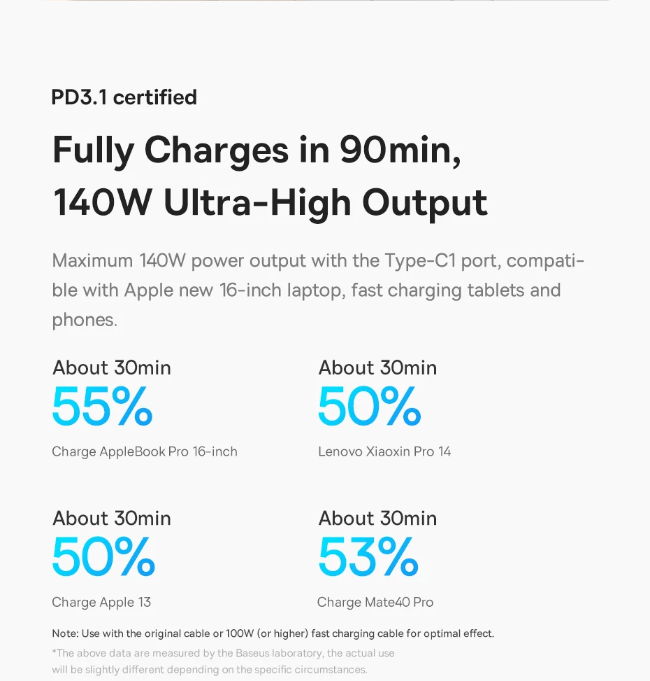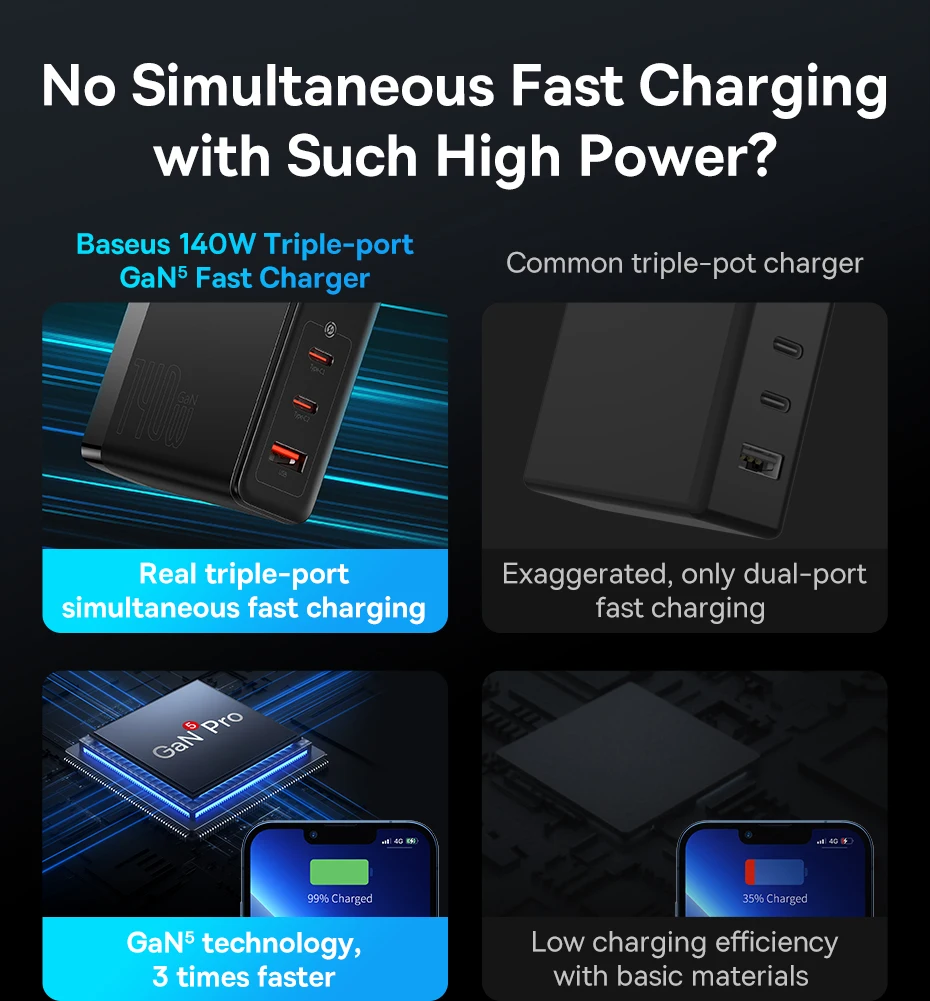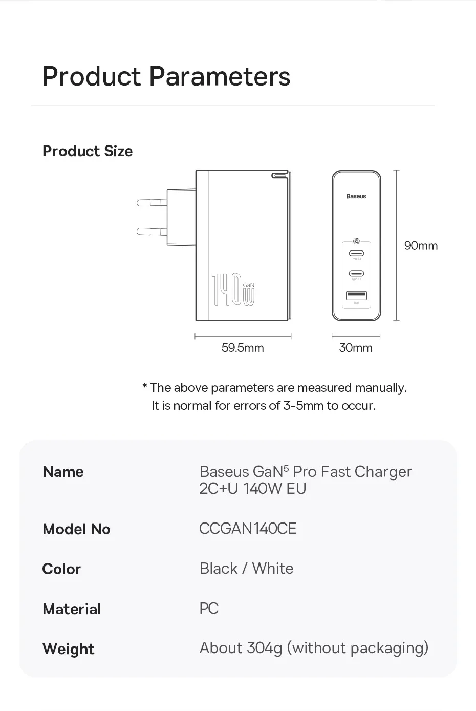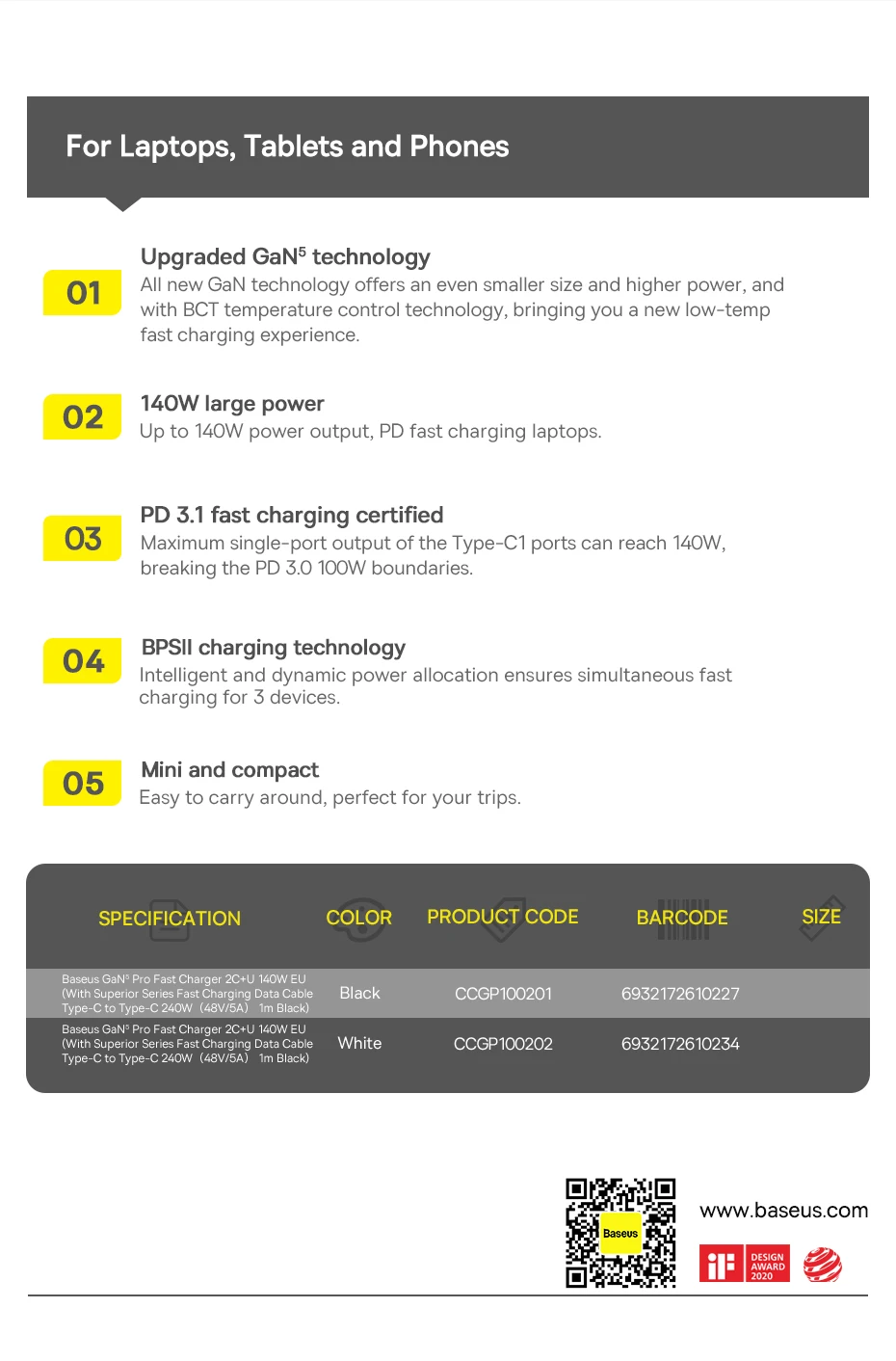 Comprar Baseus-cargador USB tipo C GaN 5 Pro, 140W, PD 3,1 QC, carga rápida 4,0 USBC, para MacBook Pro, iPhone 14, Xiaomi