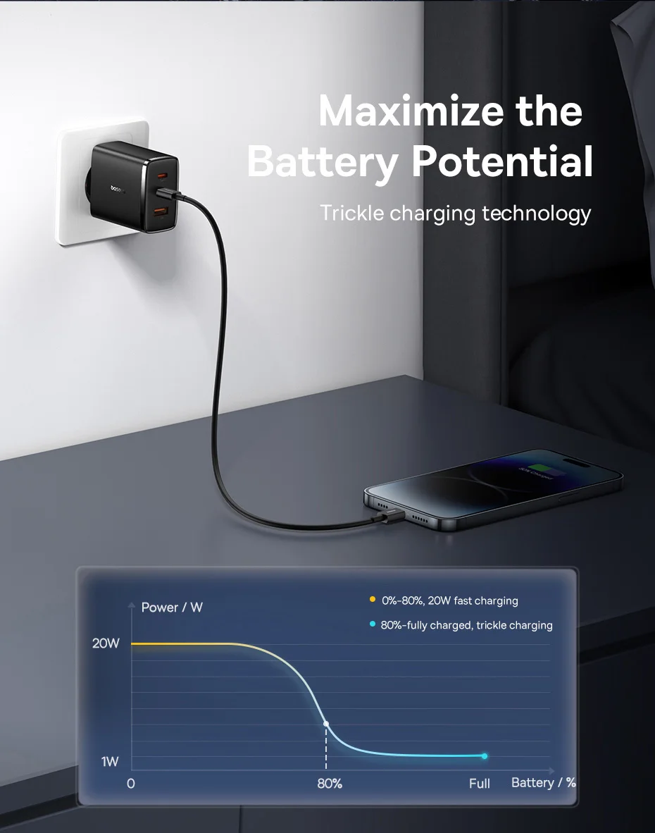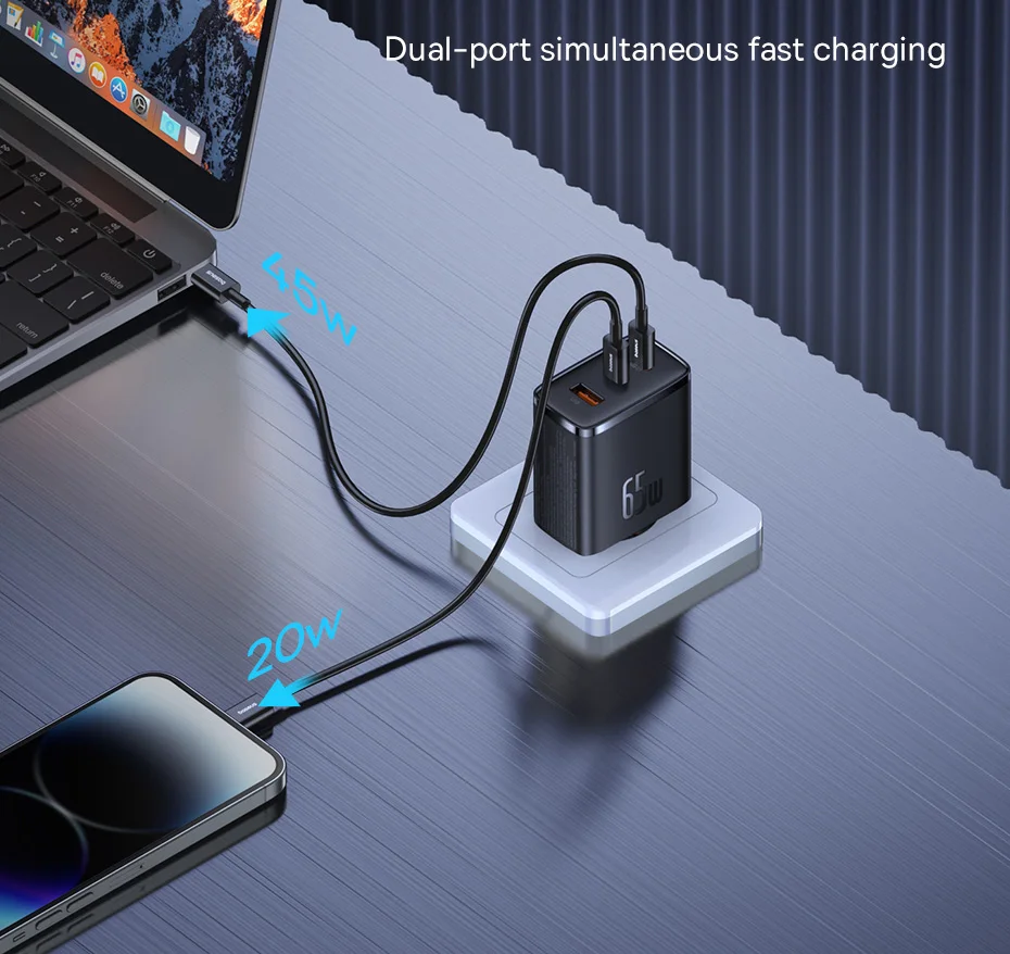 Tipo-C 1 + Tipo-C 2 + Salida USB: 45W + 15W(60W)