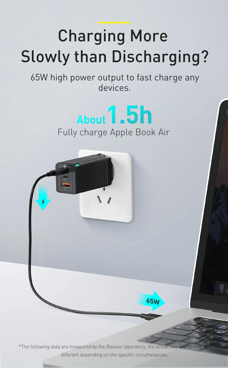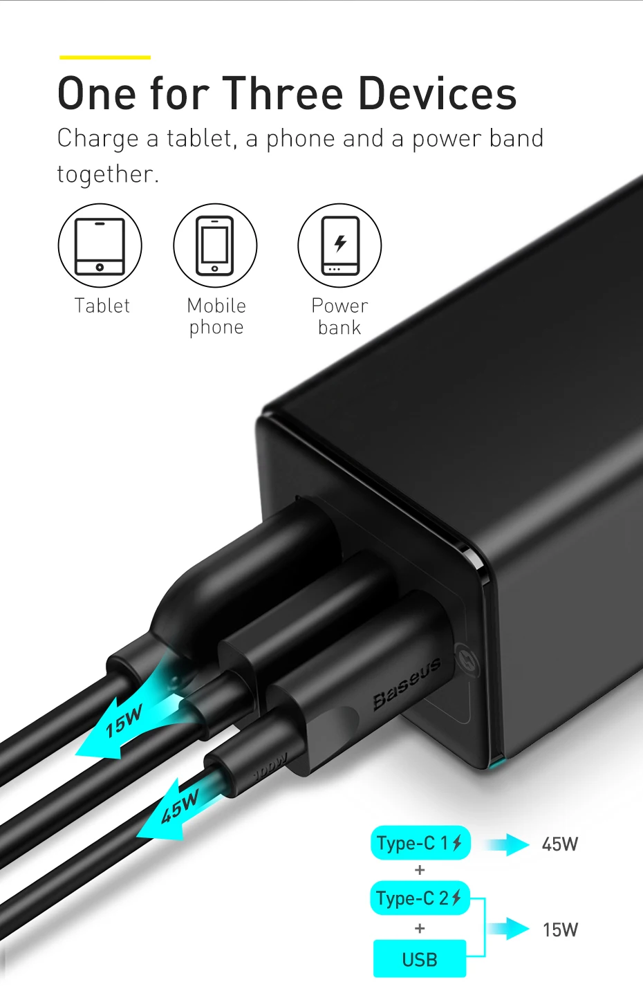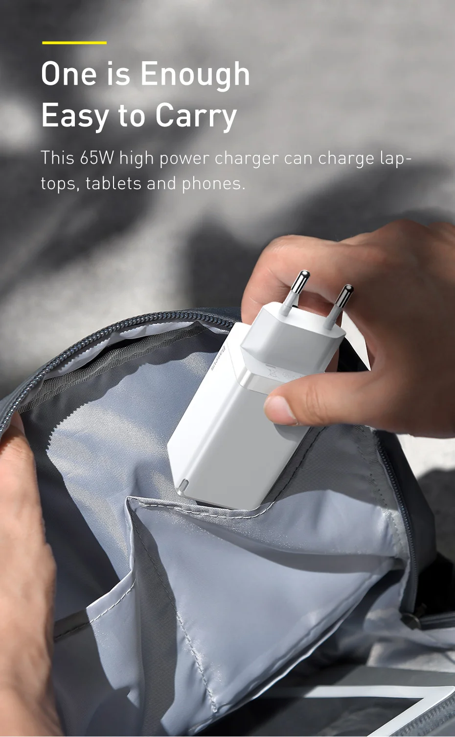 Baseus-cargador USB tipo C GaN, dispositivo de carga rápida QC PD 4,0 3,0 PD, de pared, para iPhone 12 Pro Max Xiaomi Macbook, 65W