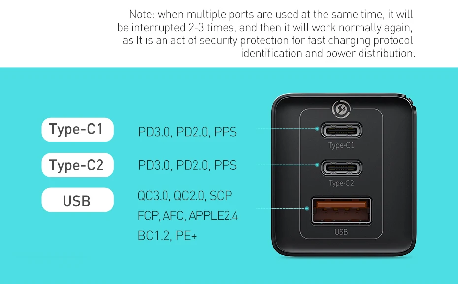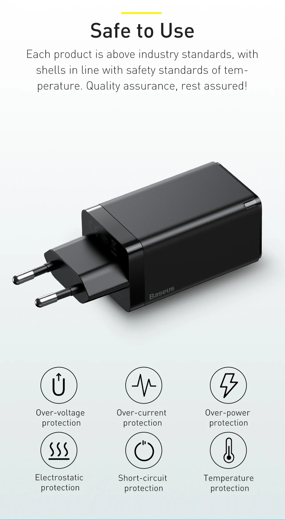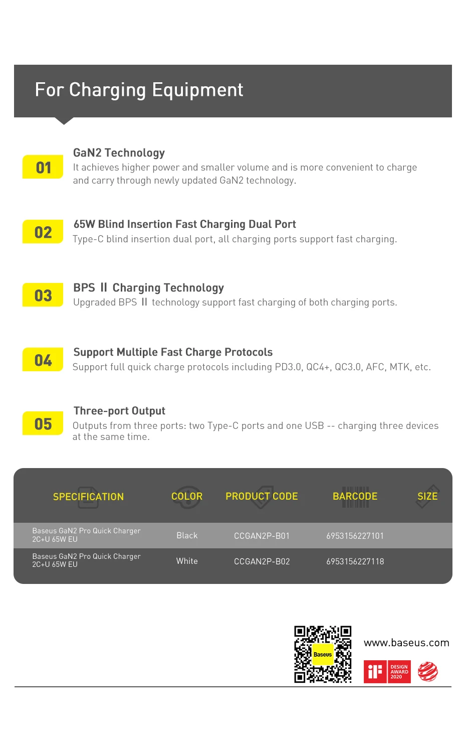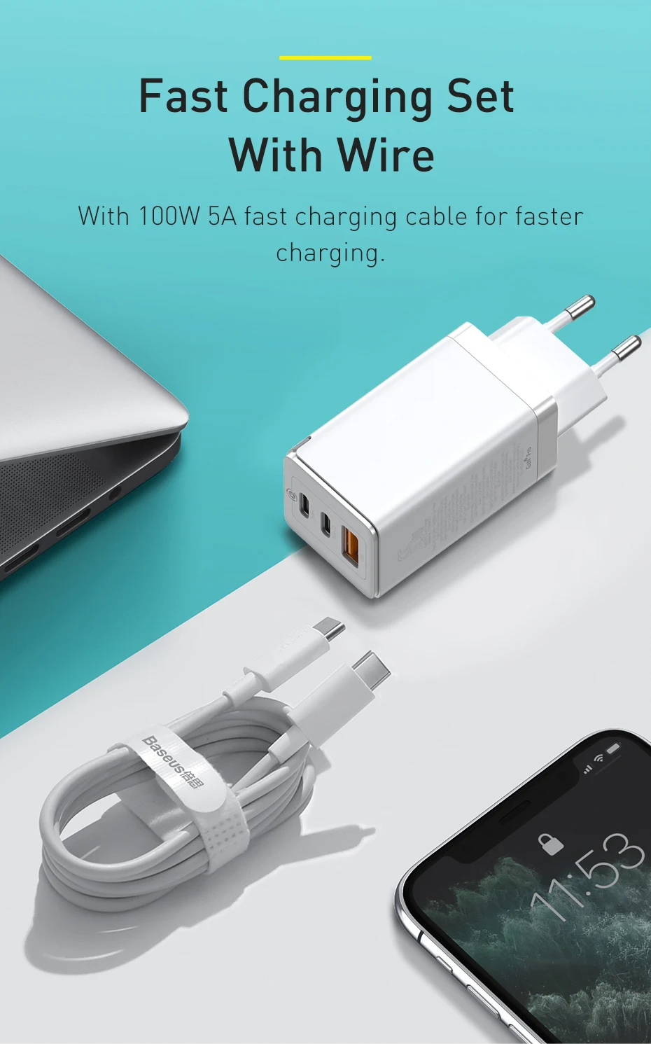 Baseus-cargador USB tipo C GaN, dispositivo de carga rápida QC PD 4,0 3,0 PD, de pared, para iPhone 12 Pro Max Xiaomi Macbook, 65W