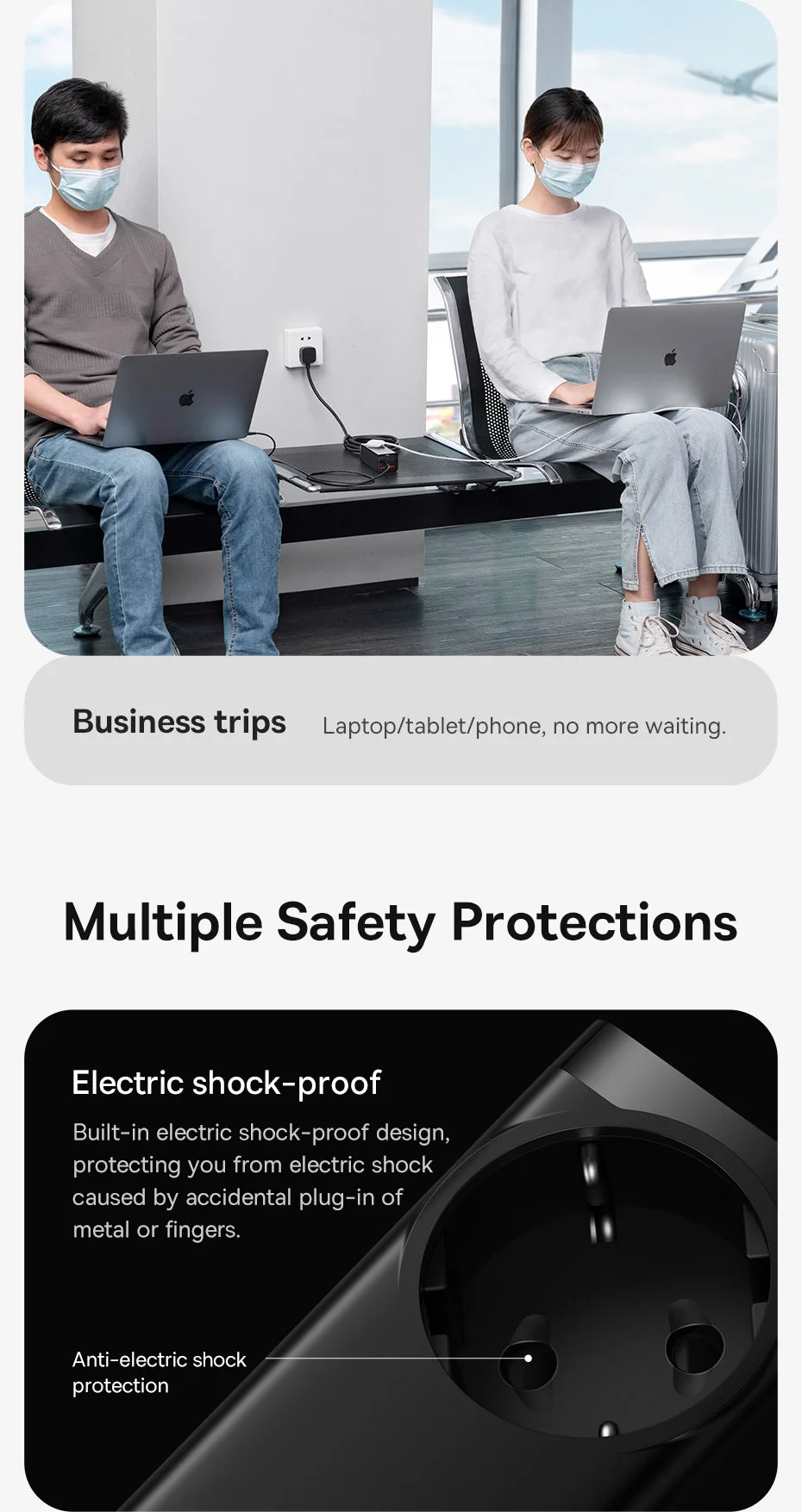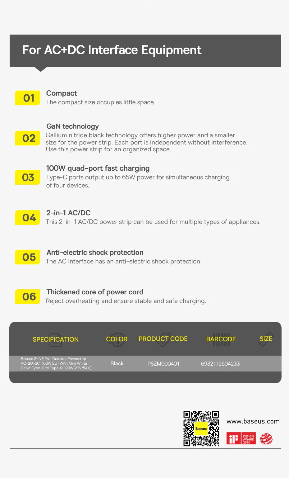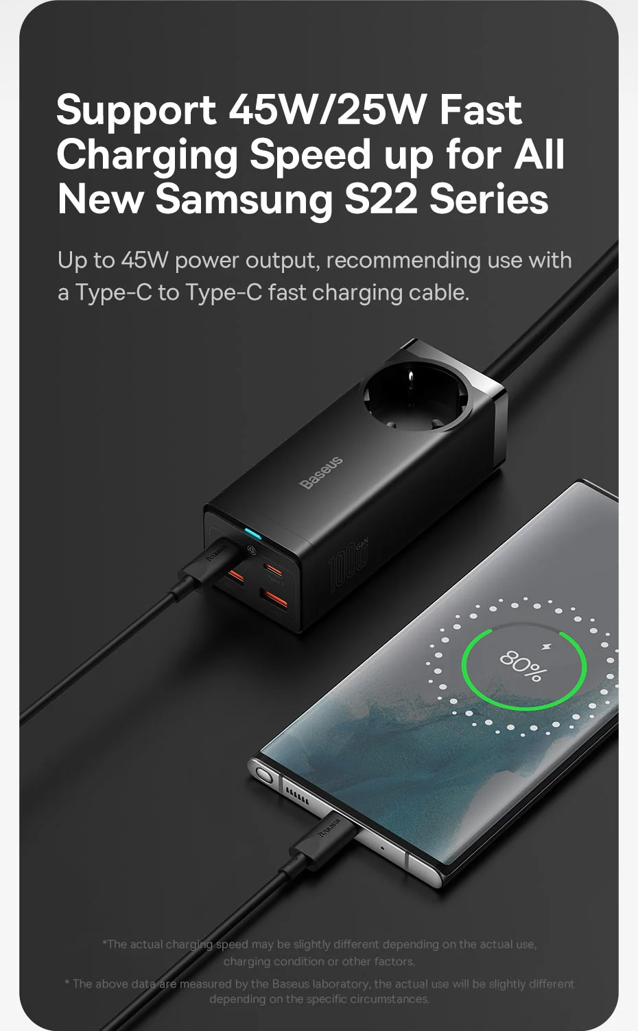 Enchufe europeo de 100WCargador de escritorio GaN3 Pro Power Strip