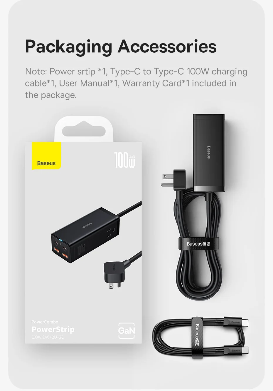 Enchufe estadounidense de 100WCargador de escritorio GaN3 Pro Power Strip