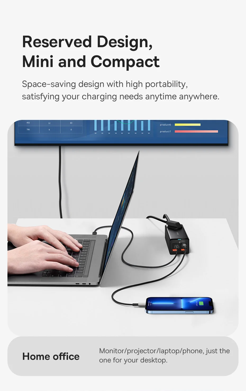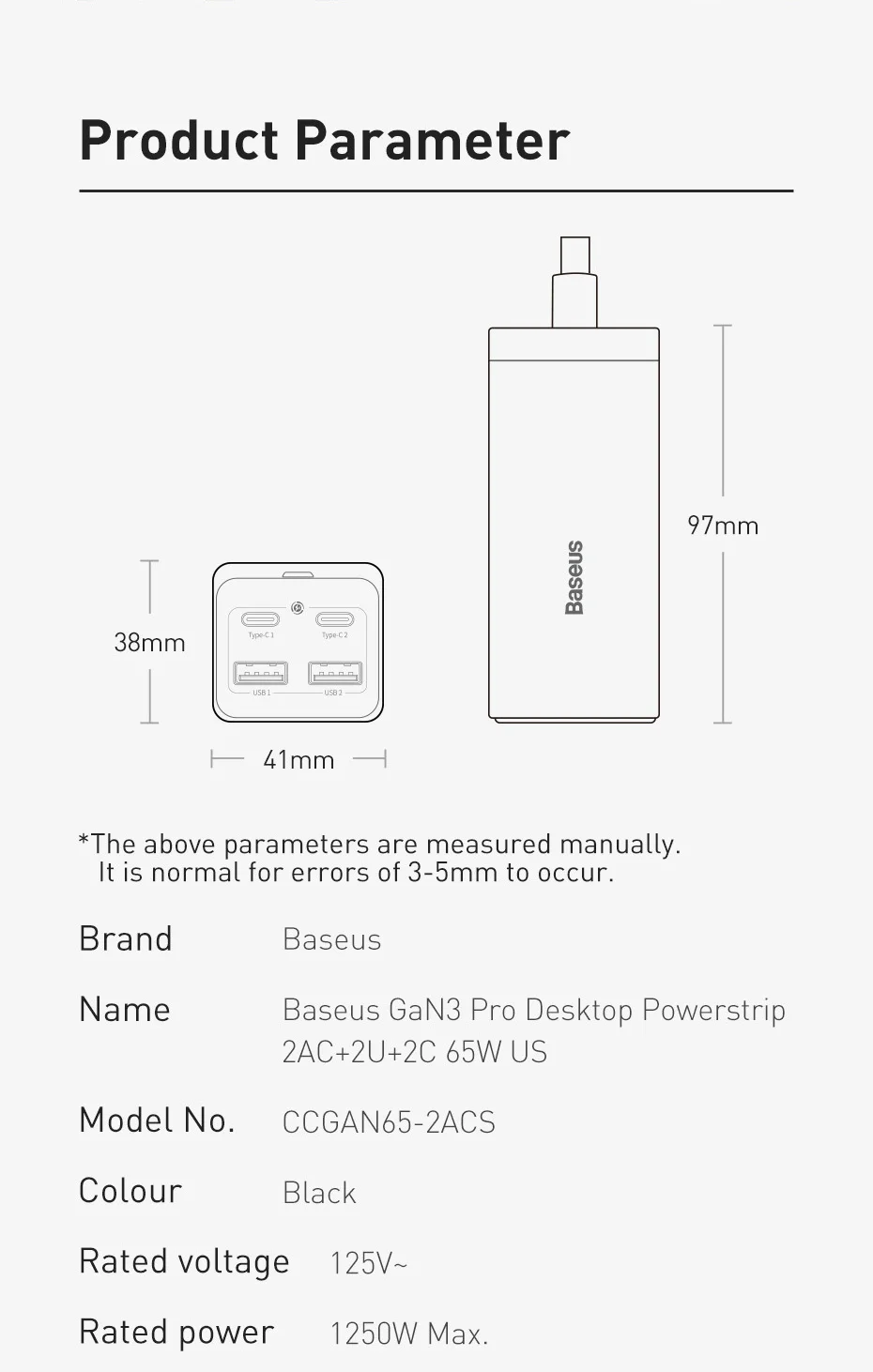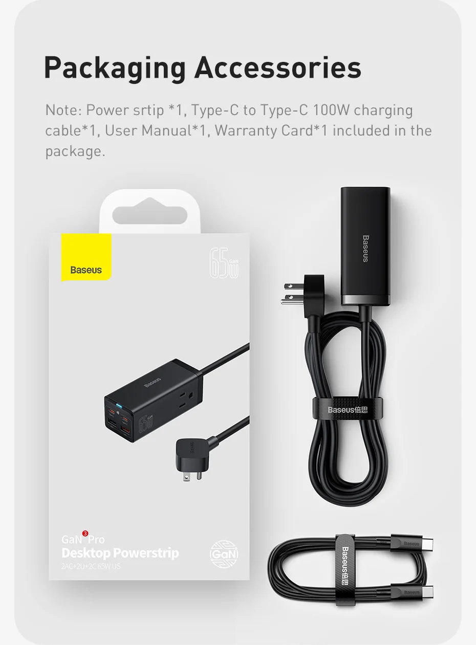 65W enchufe estadounidenseCargador de escritorio GaN3 Pro Power Strip