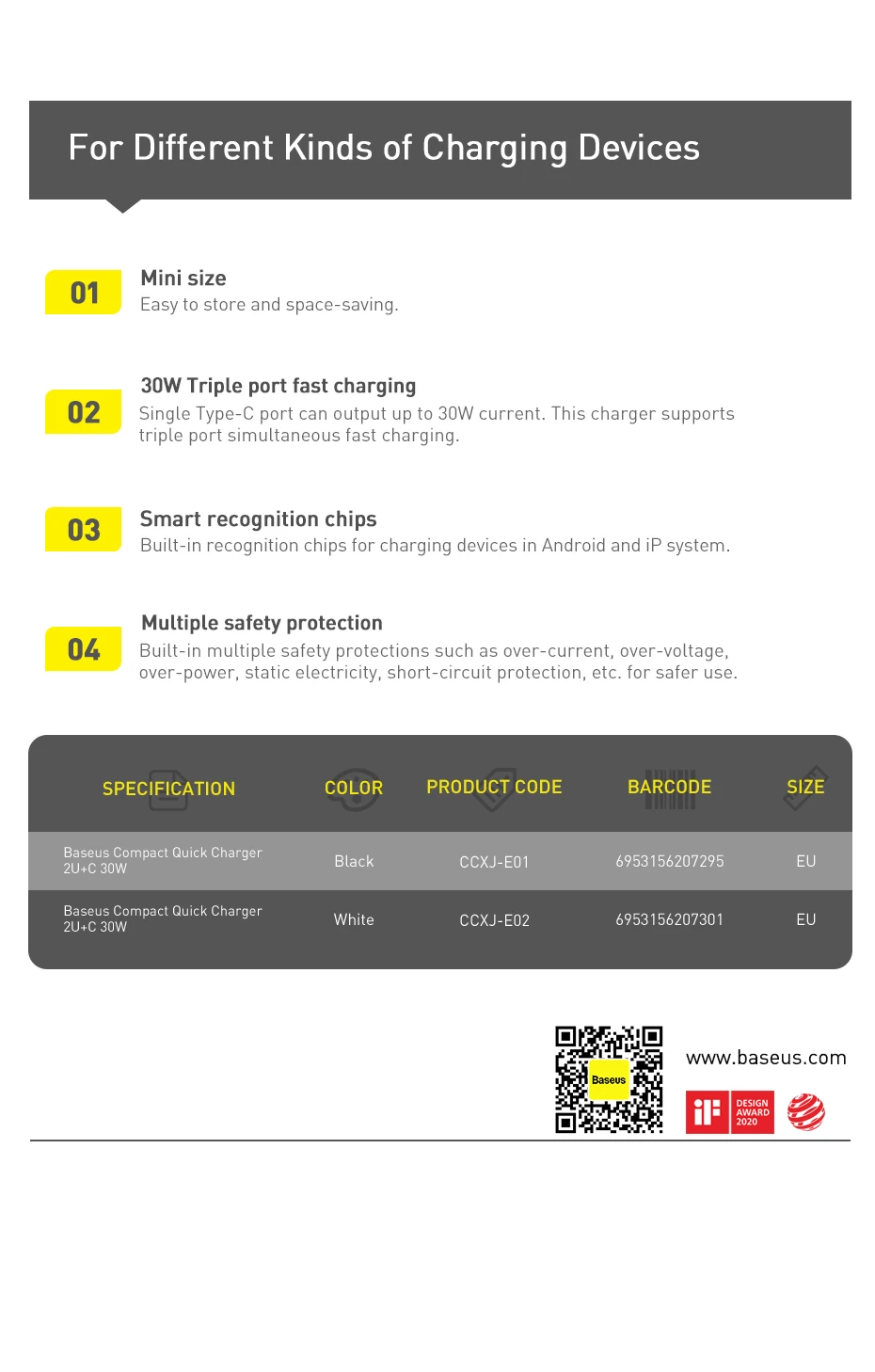 Nombre: Cargador rápido compacto Baseus 2U + C 30W