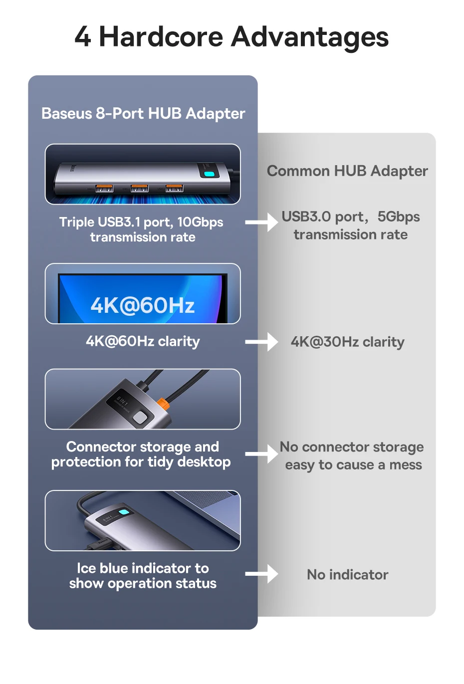 Comprar Baseus-concentrador de puertos USB tipo C 3,1, 4K, 60Hz, a HDMI, compatible con RJ45, PD, 100W, para Macbook Air Pro M2 M1, estación de acoplamiento