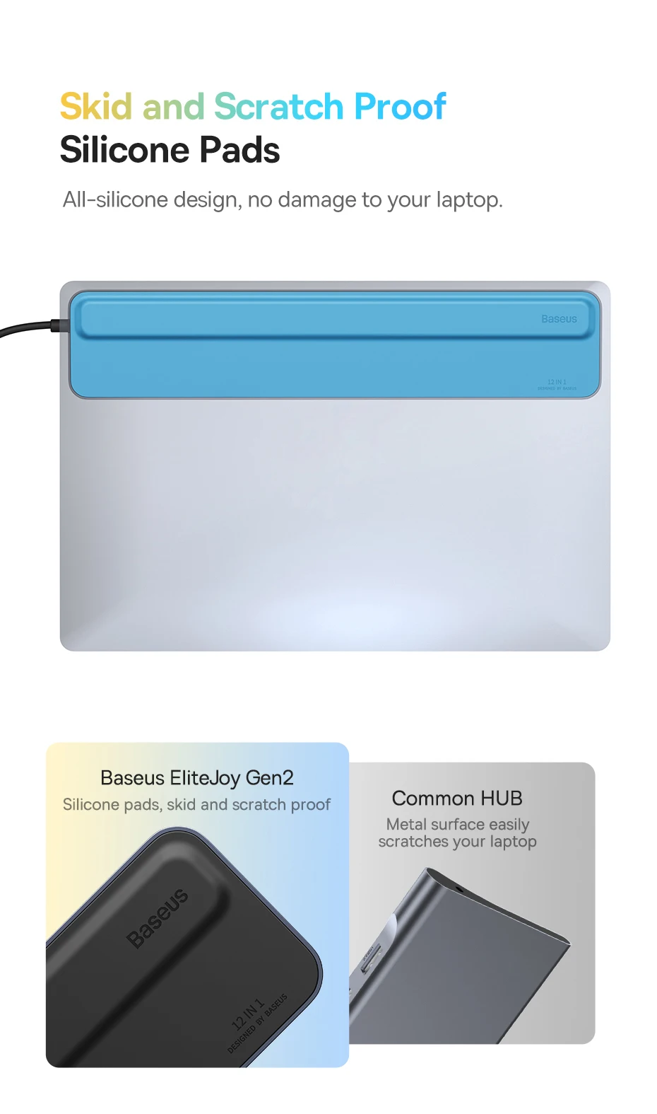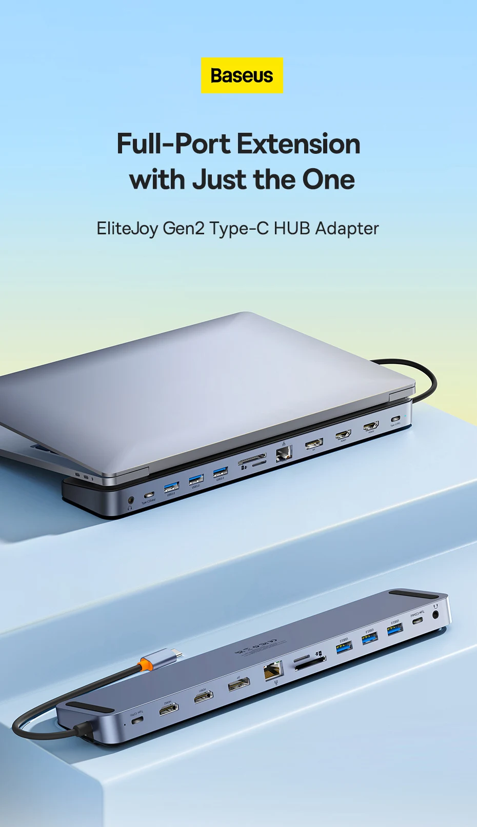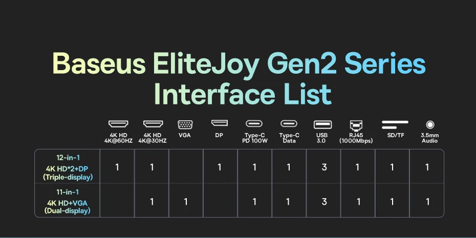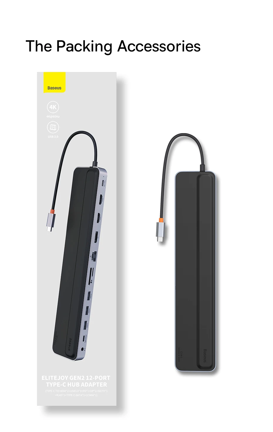 Comprar Baseus EliteJoy-HUB Gen2 12 en 1, concentrador USB C 4K @ 60Hz DP, compatible con HDMI Dual, puerto Ethernet Gigabit, 3 USB 3,0, lector de tarjetas TF/SD