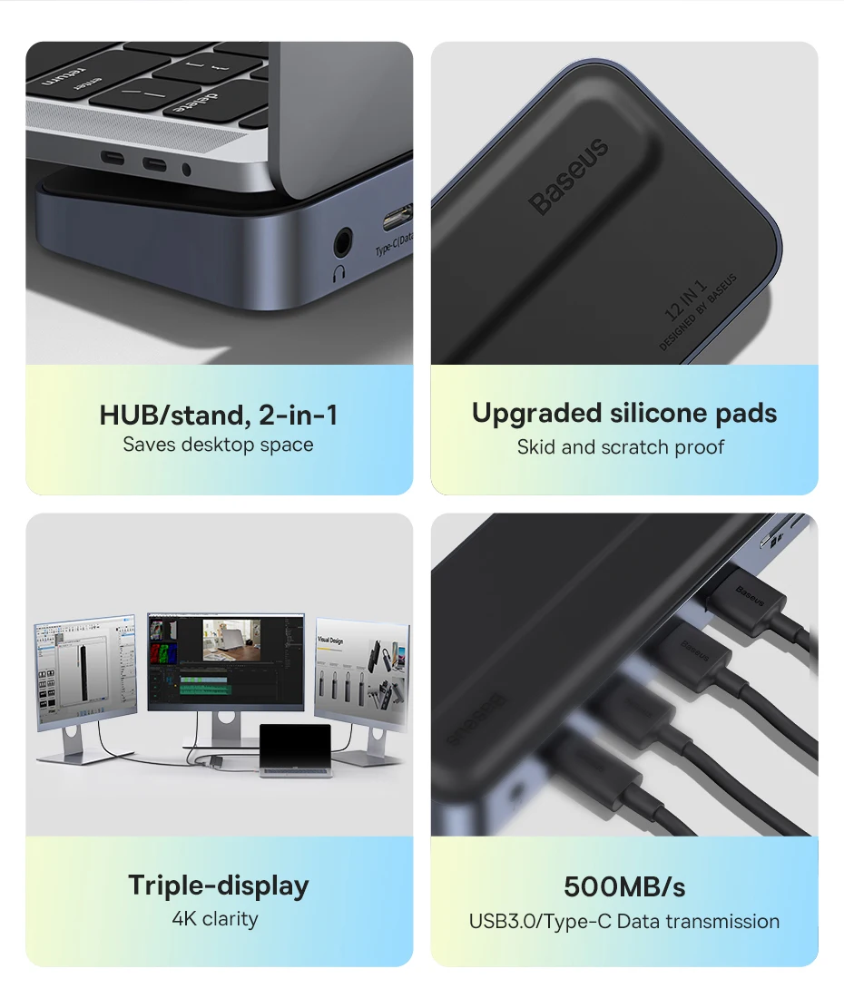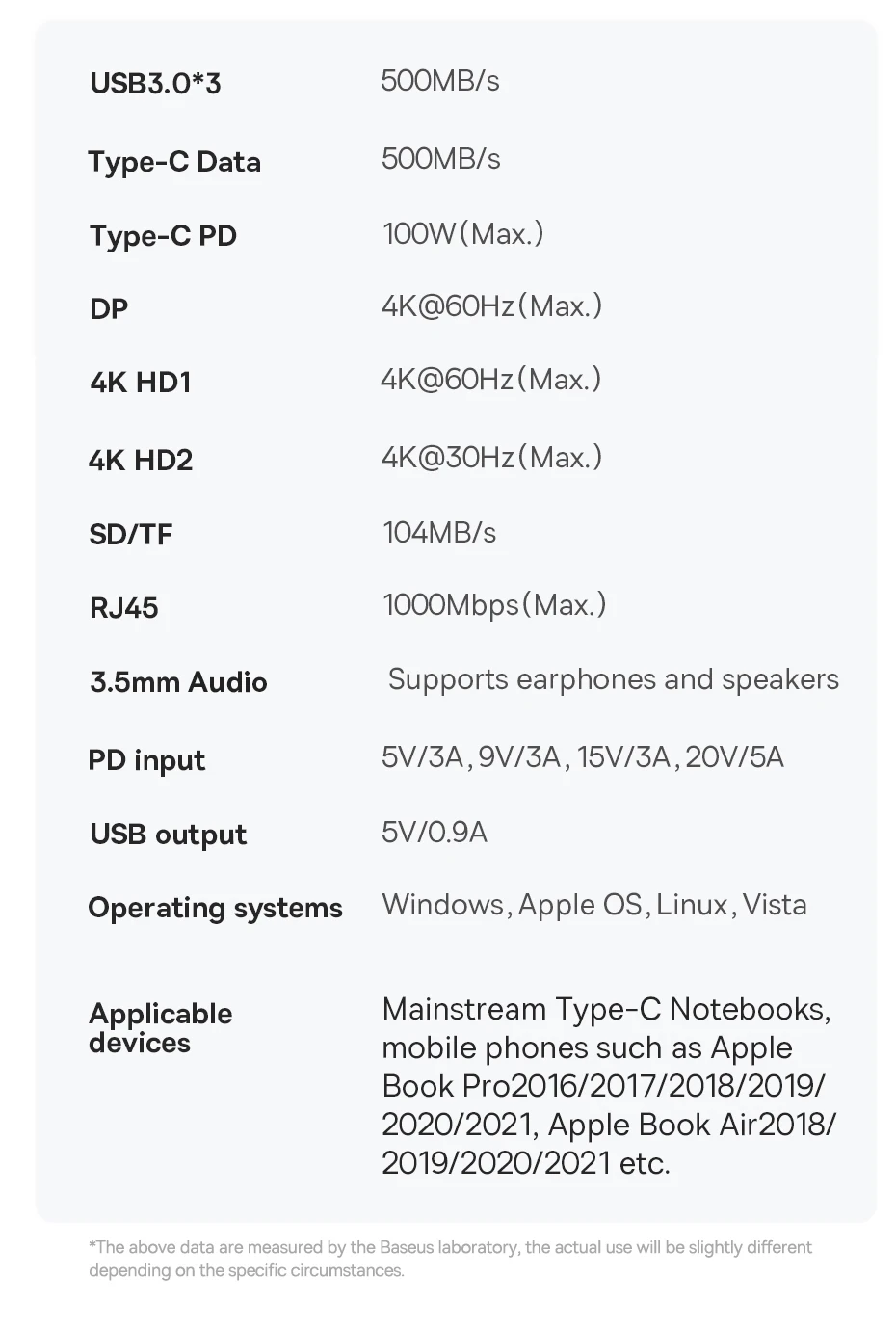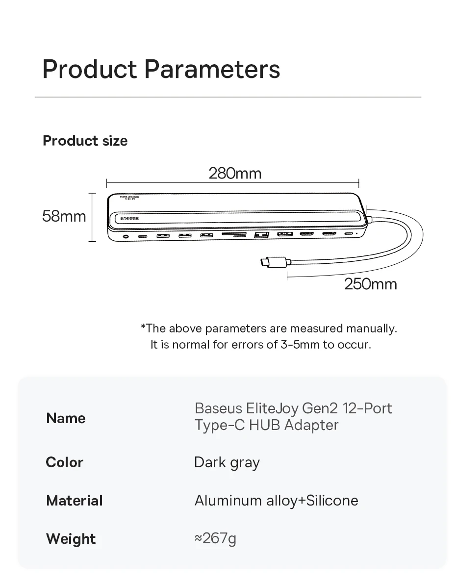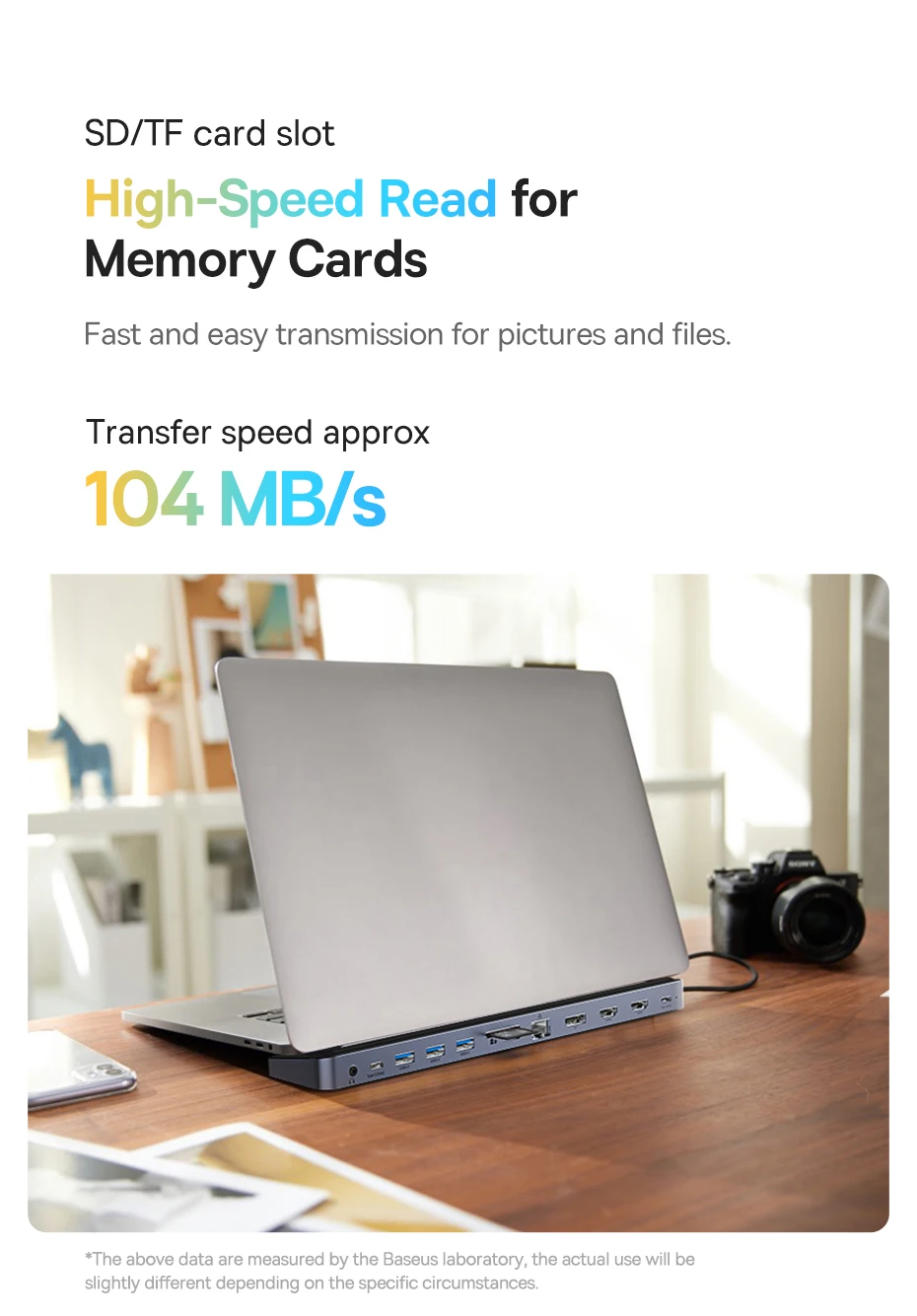 Comprar Baseus EliteJoy-HUB Gen2 12 en 1, concentrador USB C 4K @ 60Hz DP, compatible con HDMI Dual, puerto Ethernet Gigabit, 3 USB 3,0, lector de tarjetas TF/SD