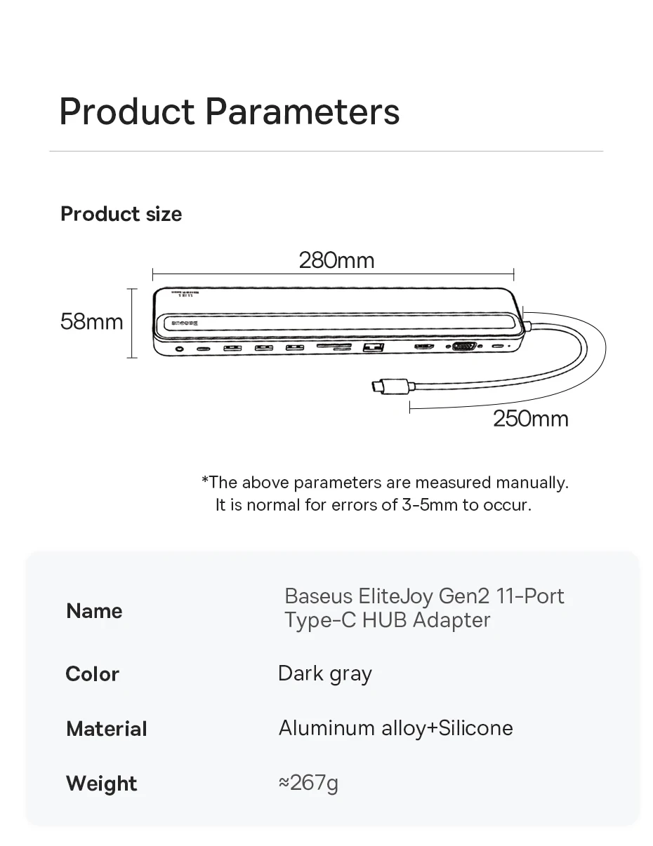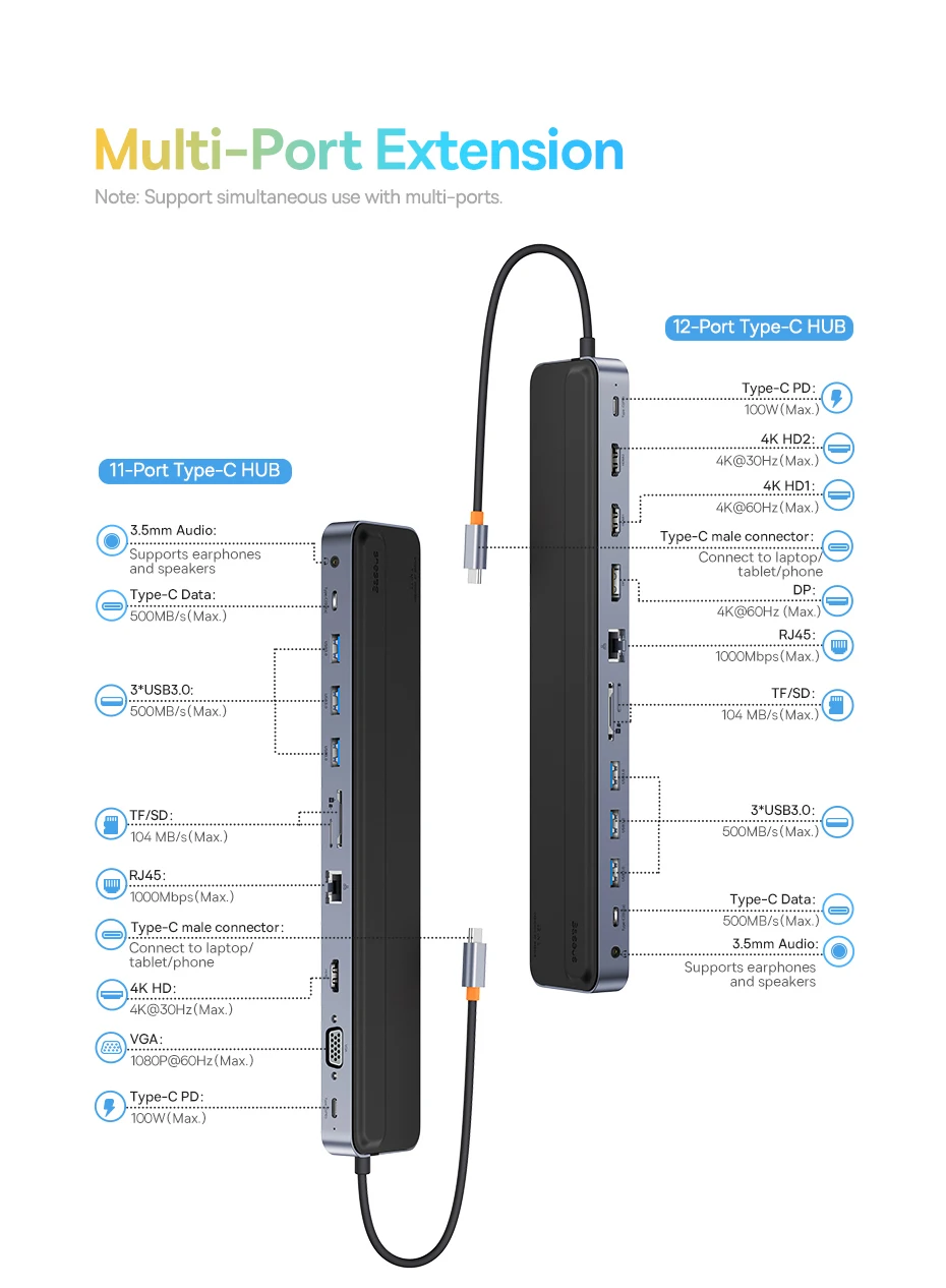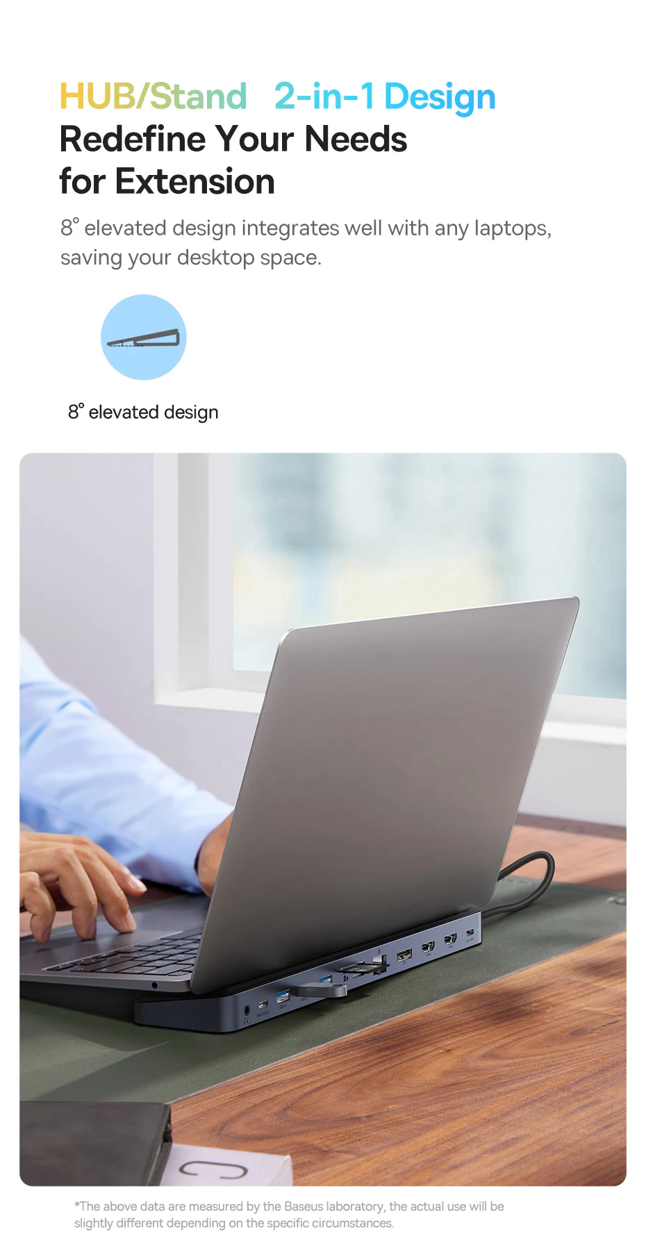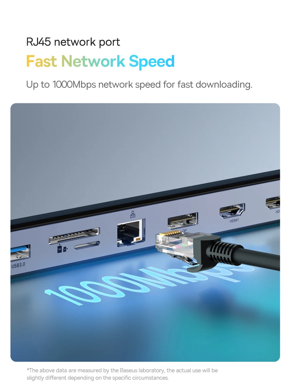 Comprar Baseus EliteJoy-HUB Gen2 12 en 1, concentrador USB C 4K @ 60Hz DP, compatible con HDMI Dual, puerto Ethernet Gigabit, 3 USB 3,0, lector de tarjetas TF/SD