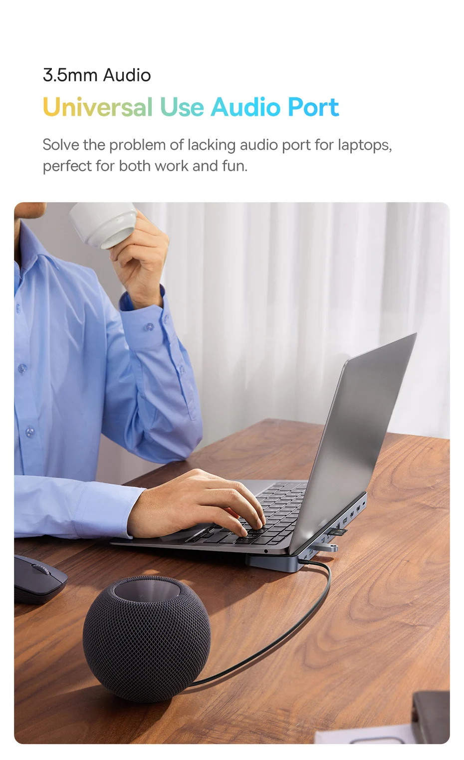 Resuelve el problema de la falta de puerto de audio para portátiles, perfecto para el trabajo y la diversión.